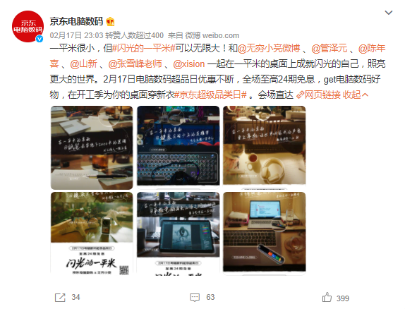 与此同时,品牌也鼓励用户从这一平米的书桌出发照亮更大的世界,也正符合京东「不辜负每一份热爱」的品牌理念,在为电脑数码超级品类日引流的同时,构建起营销内容与品牌slogan的强契合。