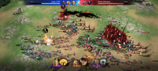 不过值得注意的是,以上的局内战斗玩法仅仅只出现在PVE关卡(战役模式)、内城剧情以及相关活动中。玩家在大地图上打地,或者与其他玩家部队进行PVP时,战斗过程都是以相撞之后秒出战报的形式呈现。当然了,你回看战报的话,会发现战斗还是按正常流程进行的,并不是简单的数值对撞。