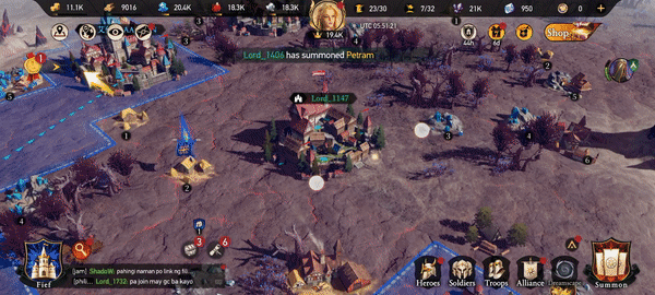 我们其实不难发现《剑与家园2》在率土-like底层框架上,融合了一定的COK-like玩法。比如说游戏允许飞城,但限制了体力和资源的购买;大地图上有需要占领的资源地,但不用连地打,铺路主要体现在联盟攻城只能打相邻的城池;玩家的成长路径也是从边缘区域开始发育、组建联盟,逐渐向地图中心地带进发,并最终完成「占领王城」这一终极目标。