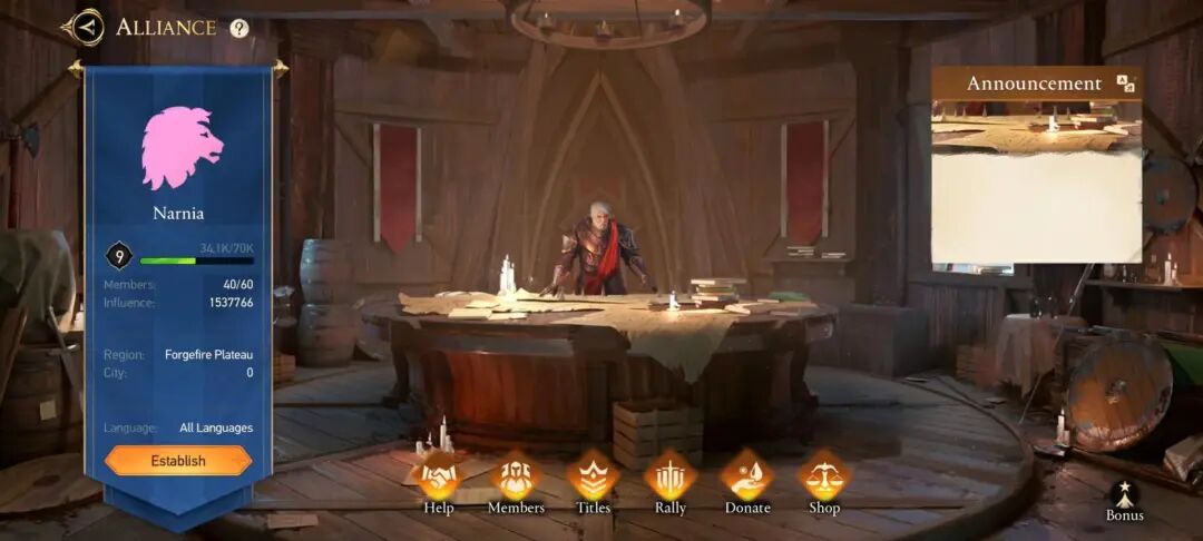 游戏的联盟玩法较为常规,帮助、官职、捐献、外交关系、商店等SLG产品该有的功能都有,联盟成长基于城市的占领,占领越多的高等级城市,联盟的规模就越大。