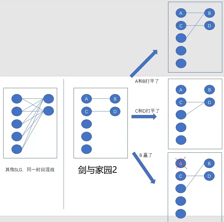 而正是因为局内战斗是这种1V1的真实推演逻辑,联盟集结战斗的结算机制也发生了相应的变化。传统SLG的集结部队(车队)在进攻时,是同一时间同时结算,而《剑与家园2》采用的是车轮战的形式,按顺序进行1V1的战斗结算。