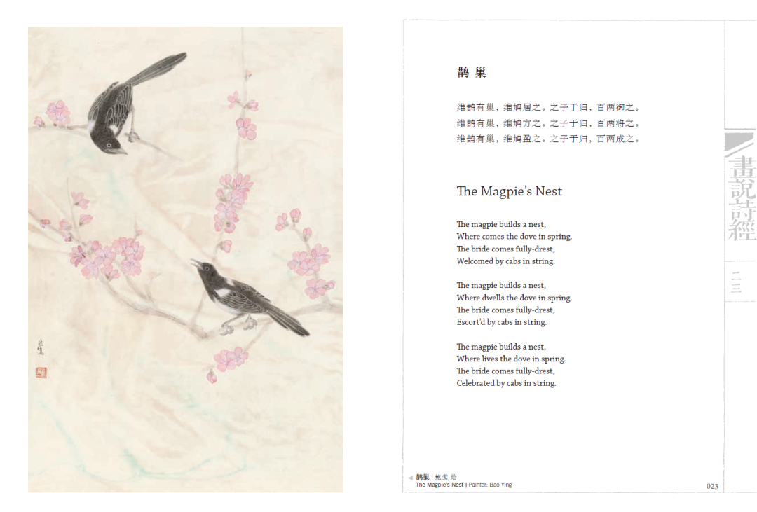 其中,《画说唐诗》收录108首(画作108幅);《画说宋词》收录117首(画作117幅);《画说诗经》收录100首(画作100幅)。
