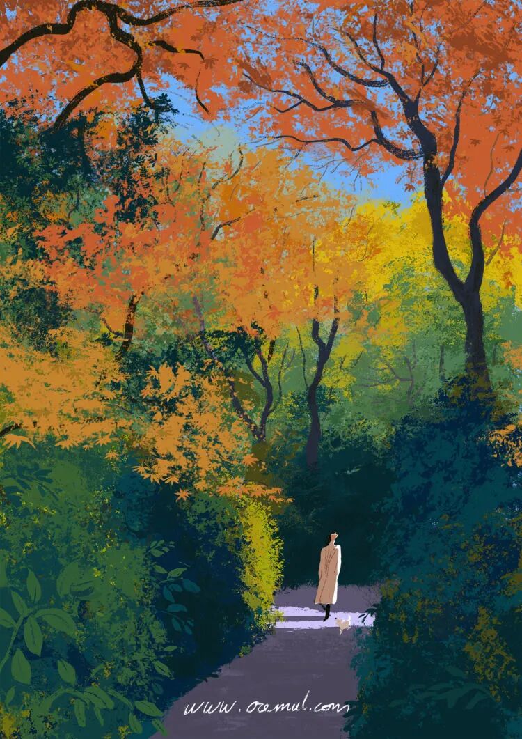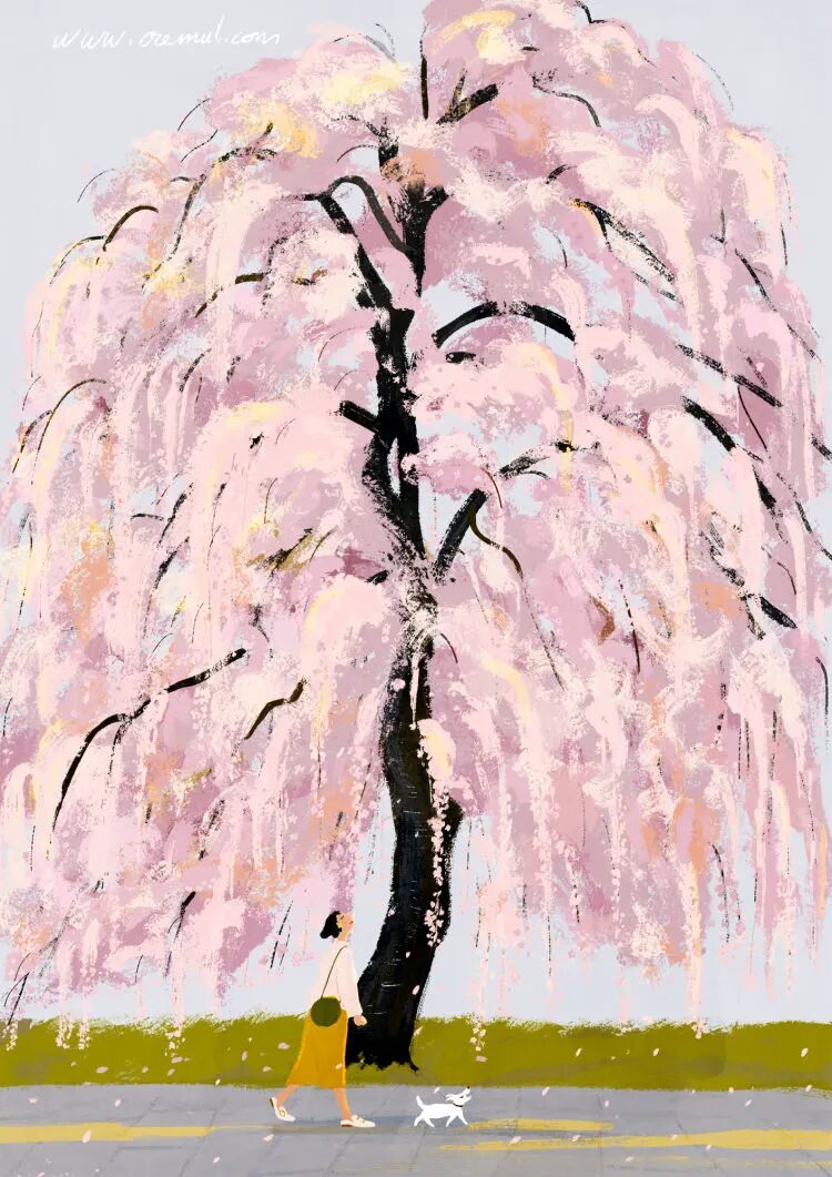 凝望绘画中的女孩穿梭于春夏秋冬,你仿佛还能听见微风轻拂树叶沙沙作响,看见阳光穿透树荫对你一眨一眨,感受到大自然大大张开的欢迎手臂。