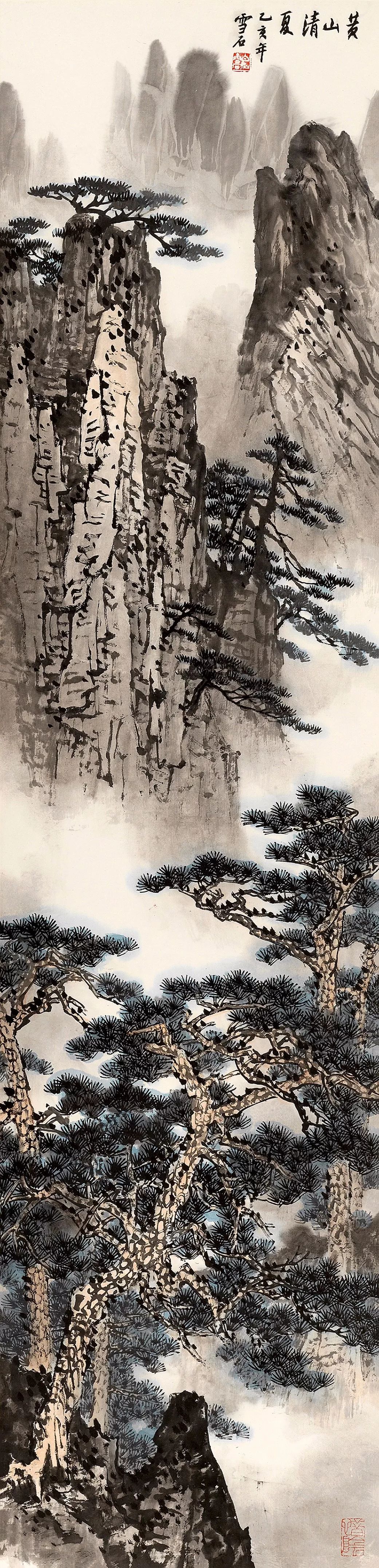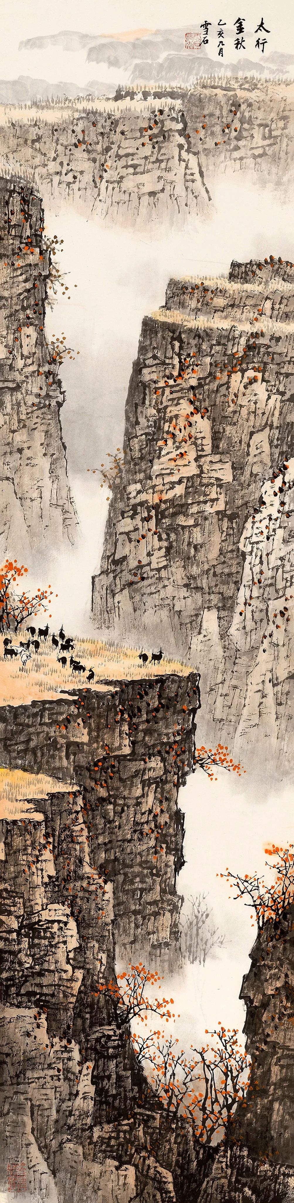 白雪石先生的山水画师宗北派,旁及南派,广采博取,兼收各类画种之精华,既具有宋画之严谨、元画之轻快,又具有水彩画之秀润,版画之纯净、明快,且具有西画装饰之美。