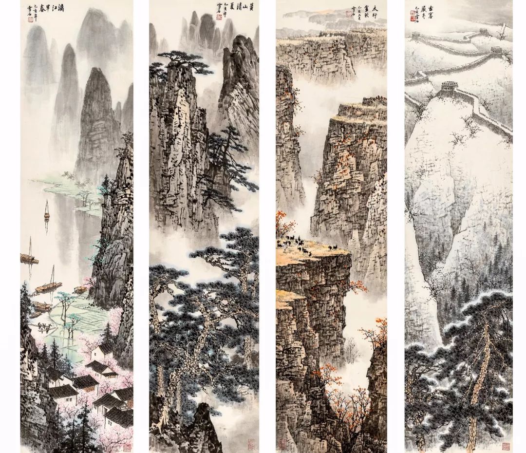 白雪石 春夏秋冬四屏 138×34 cm.×4