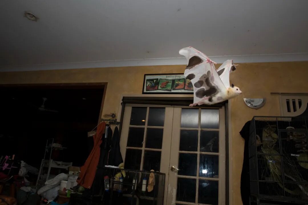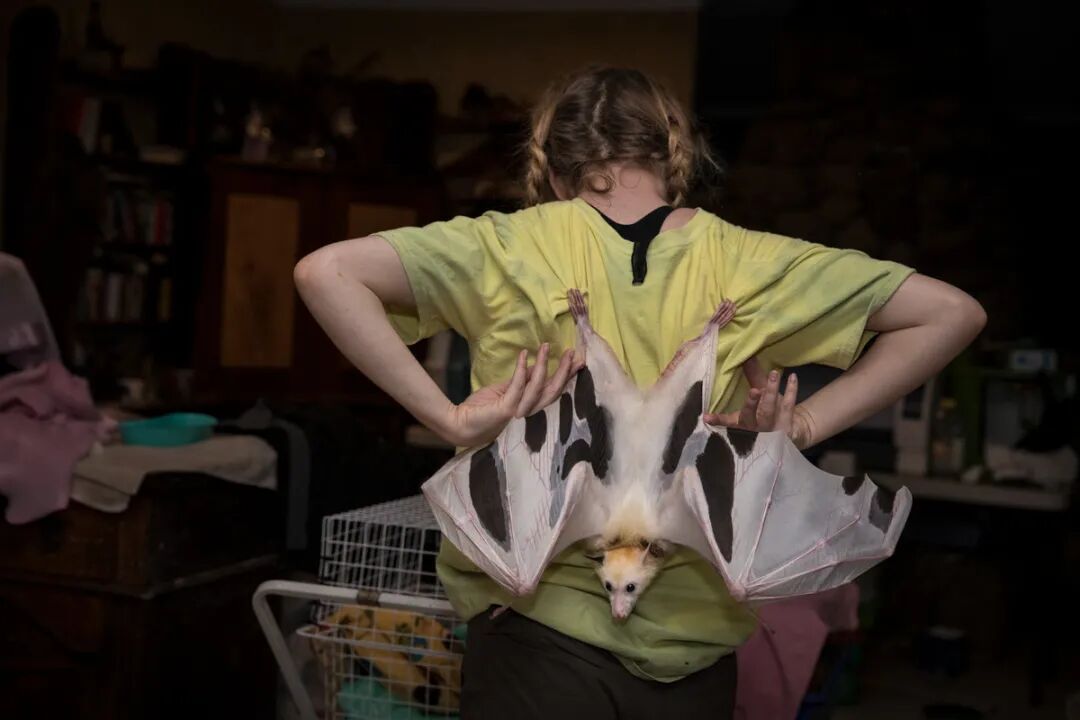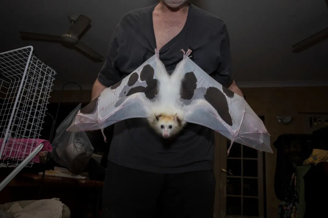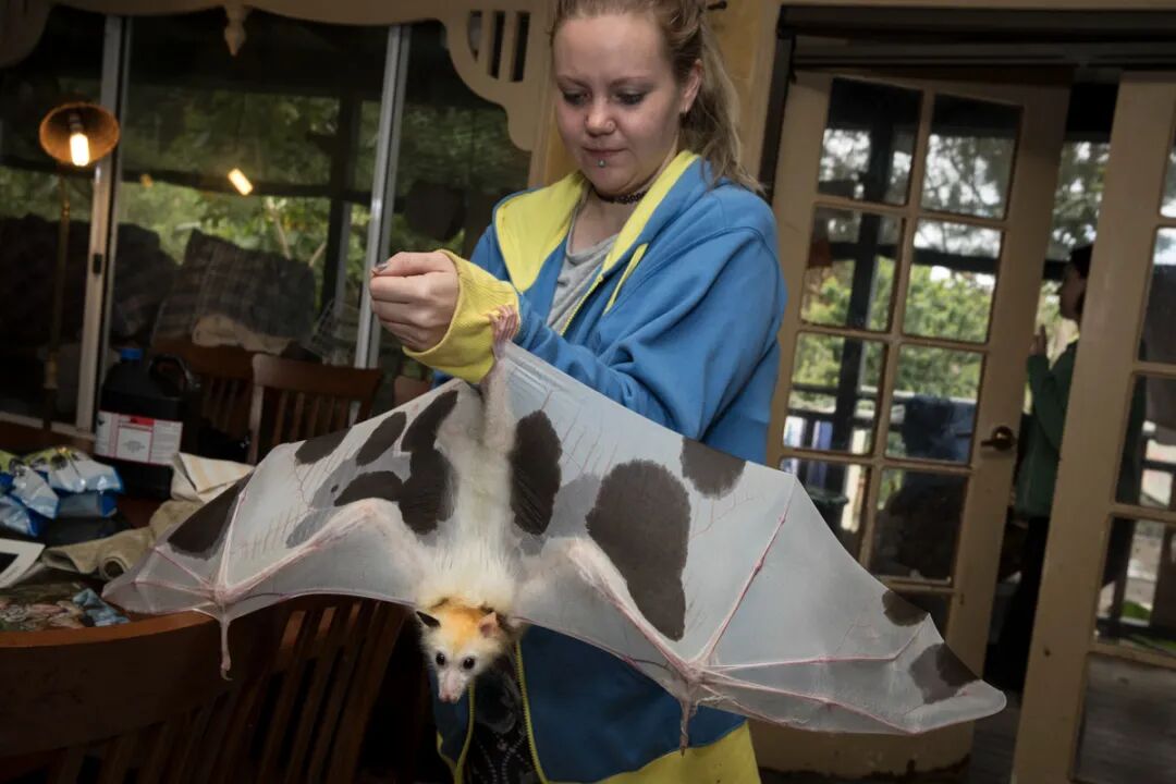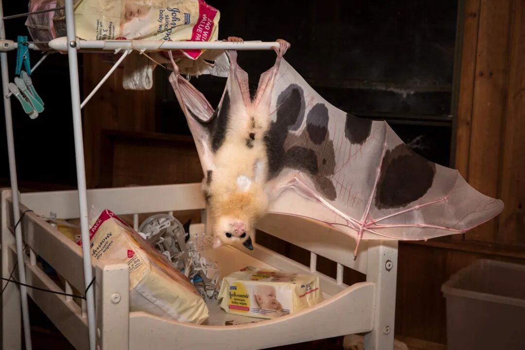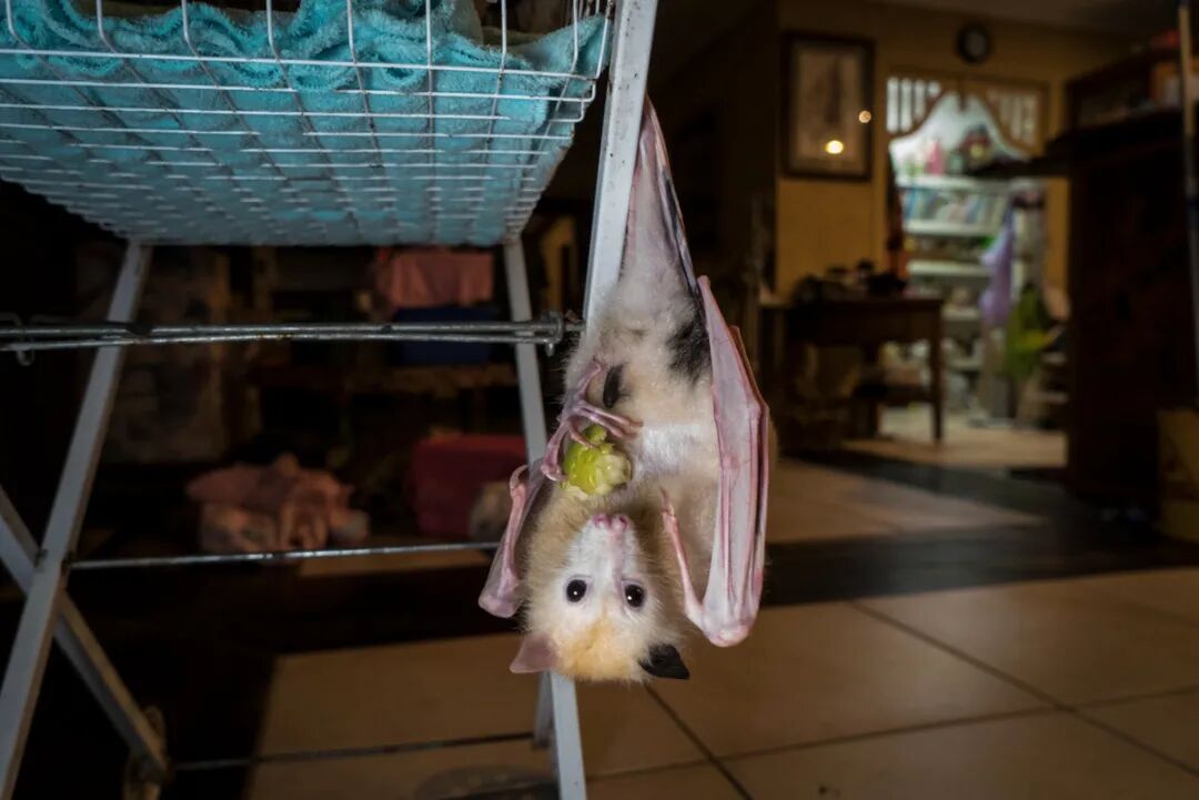 Tal'ngai是一只被确认为白化灰头飞狐,患有严重的晒伤,在澳大利亚的黄金海岸被澳大利亚蝙蝠诊所的工作人员救起。他们最初以为地上有一张纸,正要清理一下的时候,才发现它动了一下。他被确认为白化灰头飞狐,有一个罕见的基因突变。Tal'ngai半透明的翅膀和粉红色的皮肤使他很容易受到捕食者的攻击,特别容易受到阳光的伤害。他在康复后也不能和他的兄弟姐妹们一起被释放。Tal'ngai得到了澳大利亚蝙蝠诊所和野生动物创伤中心主任Trish Wimberley的悉心照料,她给他取名为Tal'ngai Dha'run,在Yugambeh的土著方言中意为“白翼”。