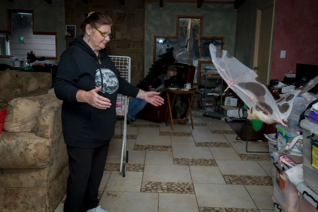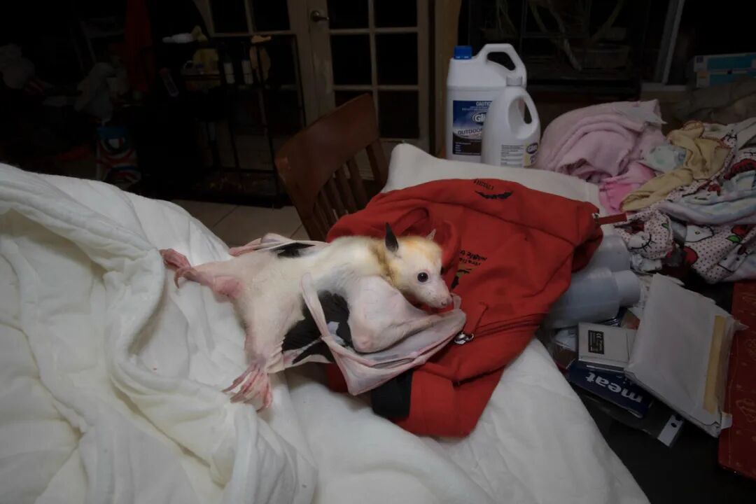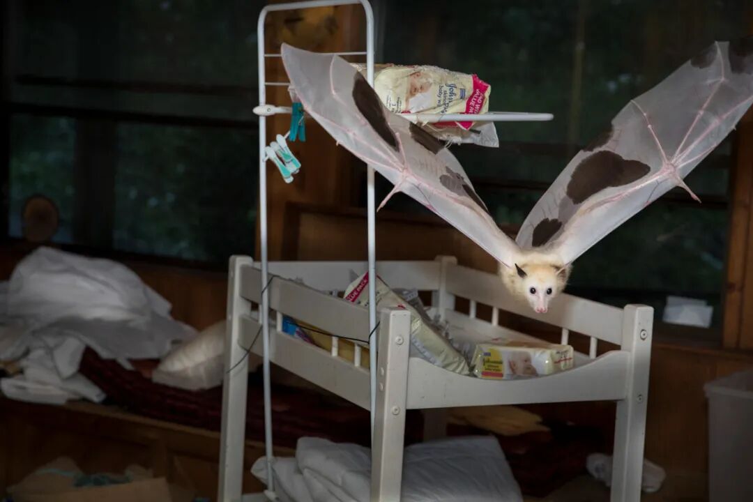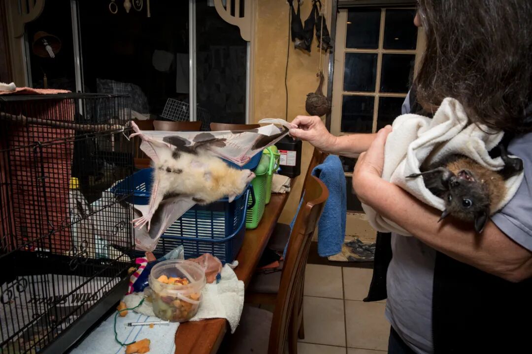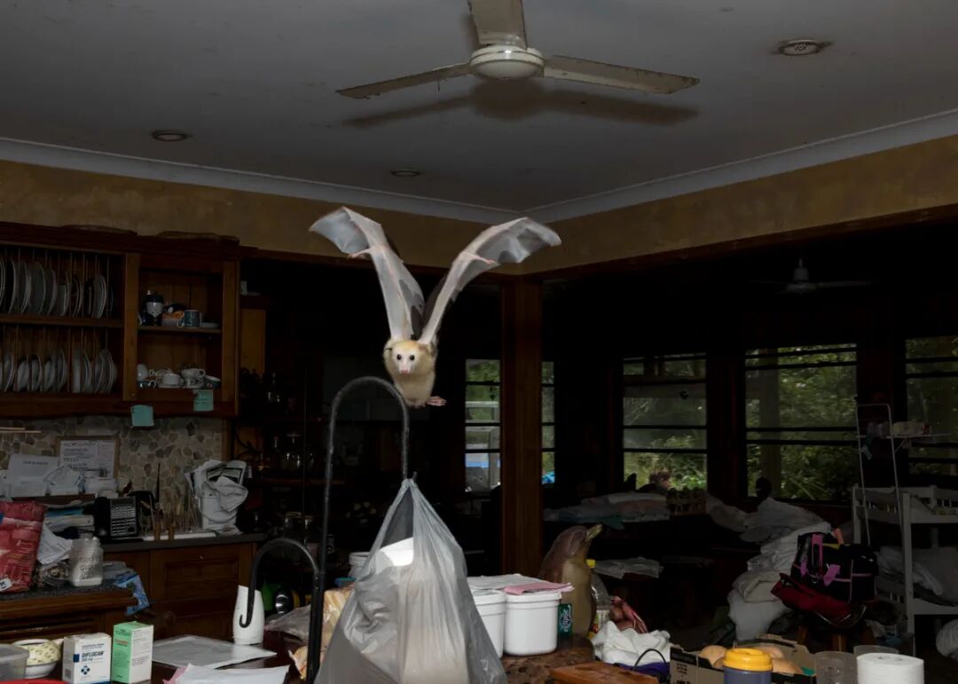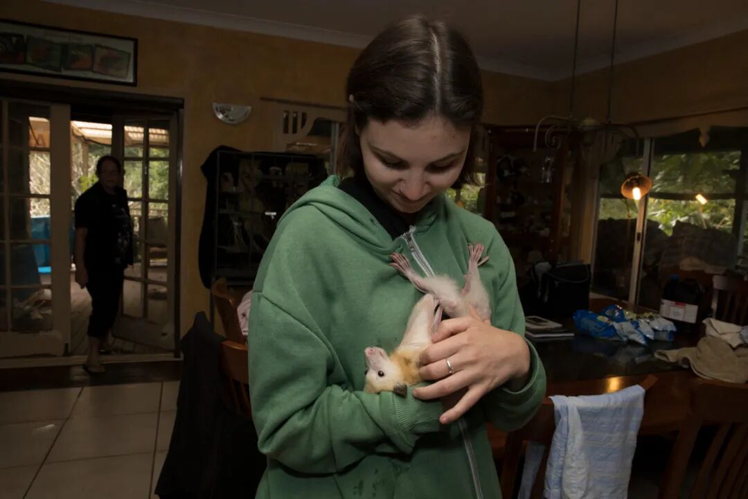 Tal'ngai是一只被确认为白化灰头飞狐,患有严重的晒伤,在澳大利亚的黄金海岸被澳大利亚蝙蝠诊所的工作人员救起。他们最初以为地上有一张纸,正要清理一下的时候,才发现它动了一下。他被确认为白化灰头飞狐,有一个罕见的基因突变。Tal'ngai半透明的翅膀和粉红色的皮肤使他很容易受到捕食者的攻击,特别容易受到阳光的伤害。他在康复后也不能和他的兄弟姐妹们一起被释放。Tal'ngai得到了澳大利亚蝙蝠诊所和野生动物创伤中心主任Trish Wimberley的悉心照料,她给他取名为Tal'ngai Dha'run,在Yugambeh的土著方言中意为“白翼”。