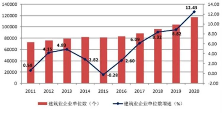 图3 2011-2020年建筑业企业数量及增速