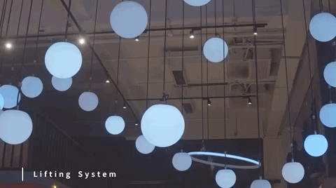 最近在为Meat&Eat的中庭做空间装置,屏幕是两米乘五米的,前面还用了一些舞台设备、升降系统。然后用创意编程的手法去连接屏幕和前面的升降系统,做一些特殊的效果,甚至也加入了一些互动的元素在里面。