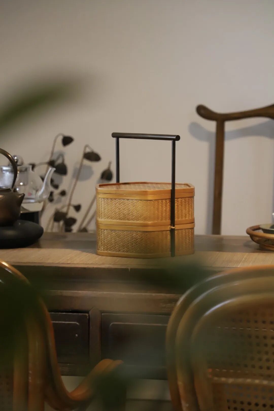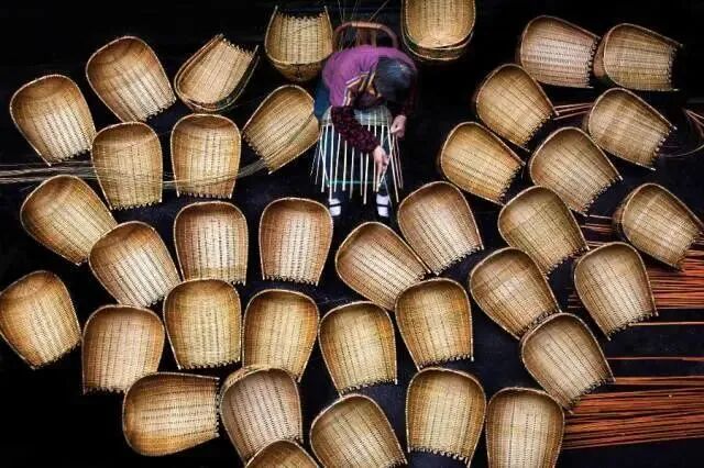 手编出来的竹器,扎实而富有弹性,让普通器皿,生出一番中国式的清丽神采。