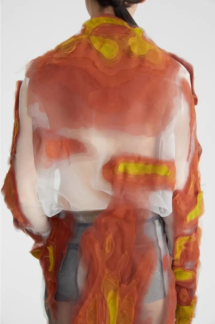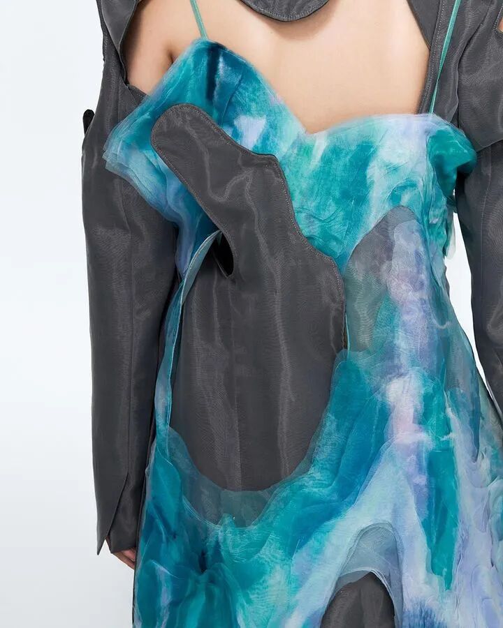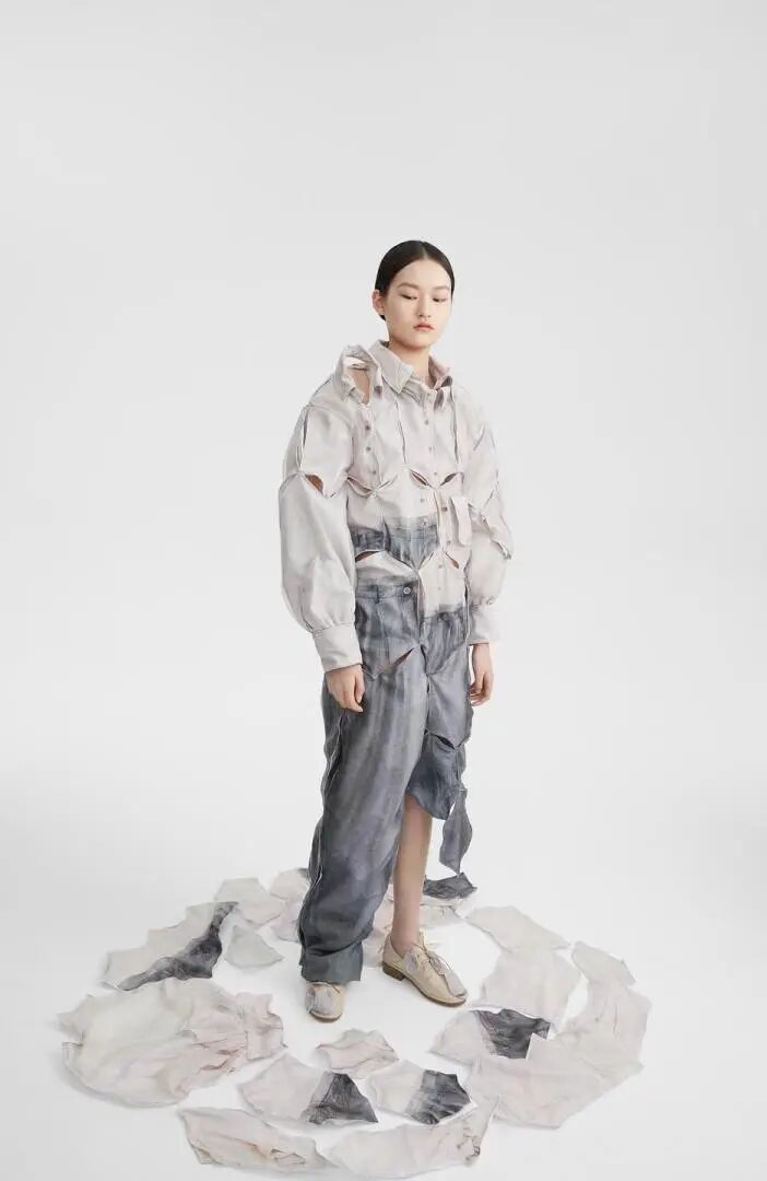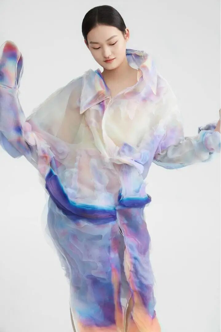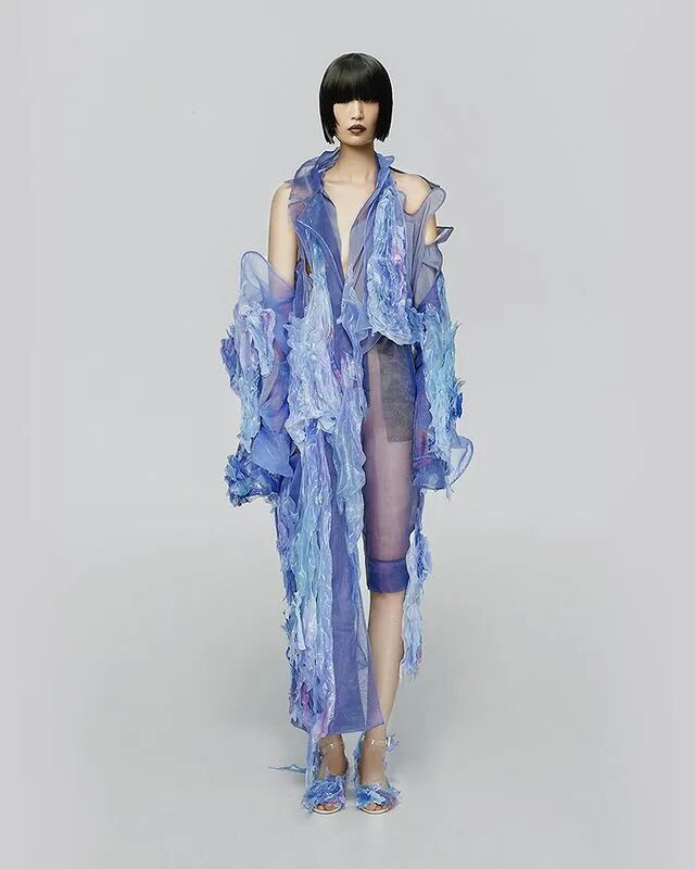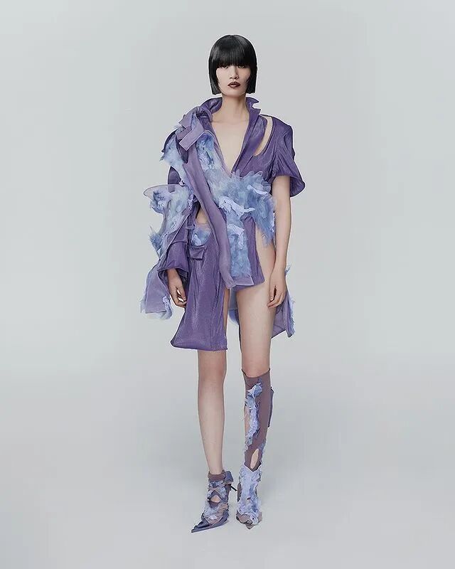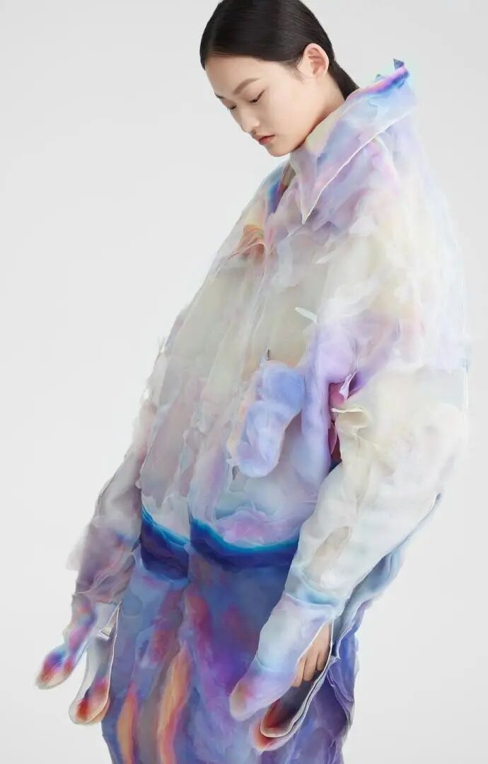 Weiran的作品使用数字技术重塑时尚设计界的常规物品。她旨在通过数字操作和纺织实验创造一种新的视觉语言,在三维空间中构建新的视觉元素。