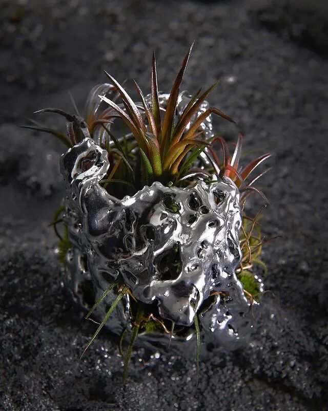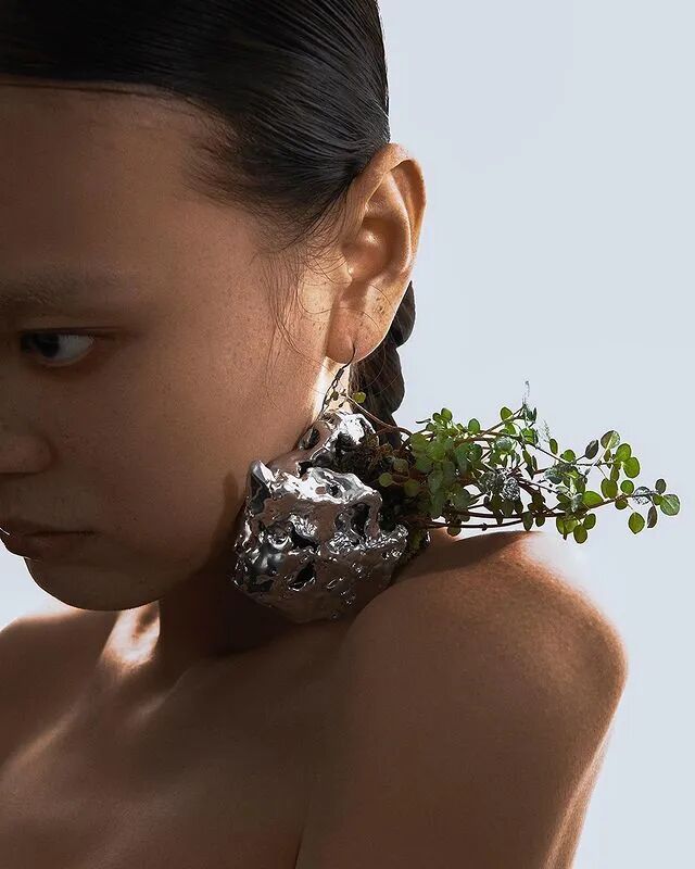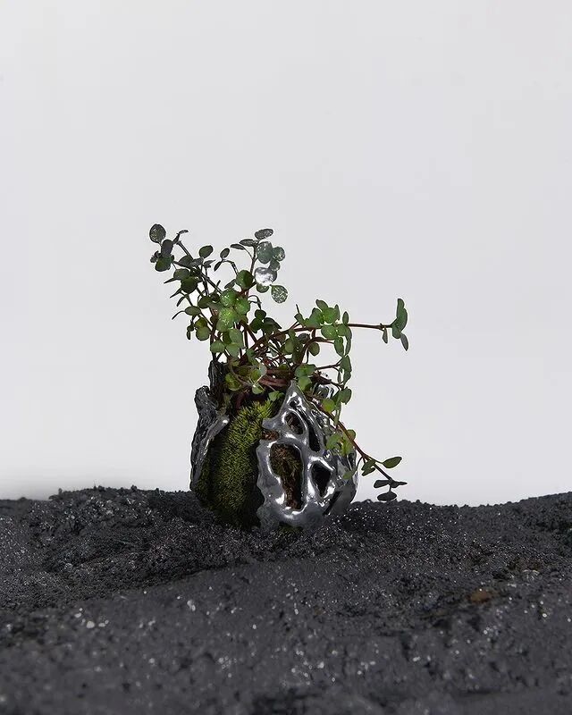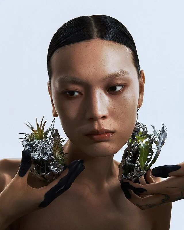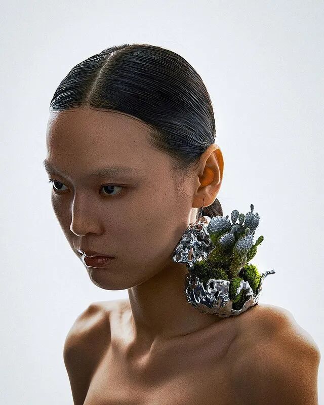 该系列利用数字技术重塑了自然界中的生态系统和服装配饰,用金属创造出一种新的视觉语言,将金属与自然、纺织品有机融合,犹如自然生长。