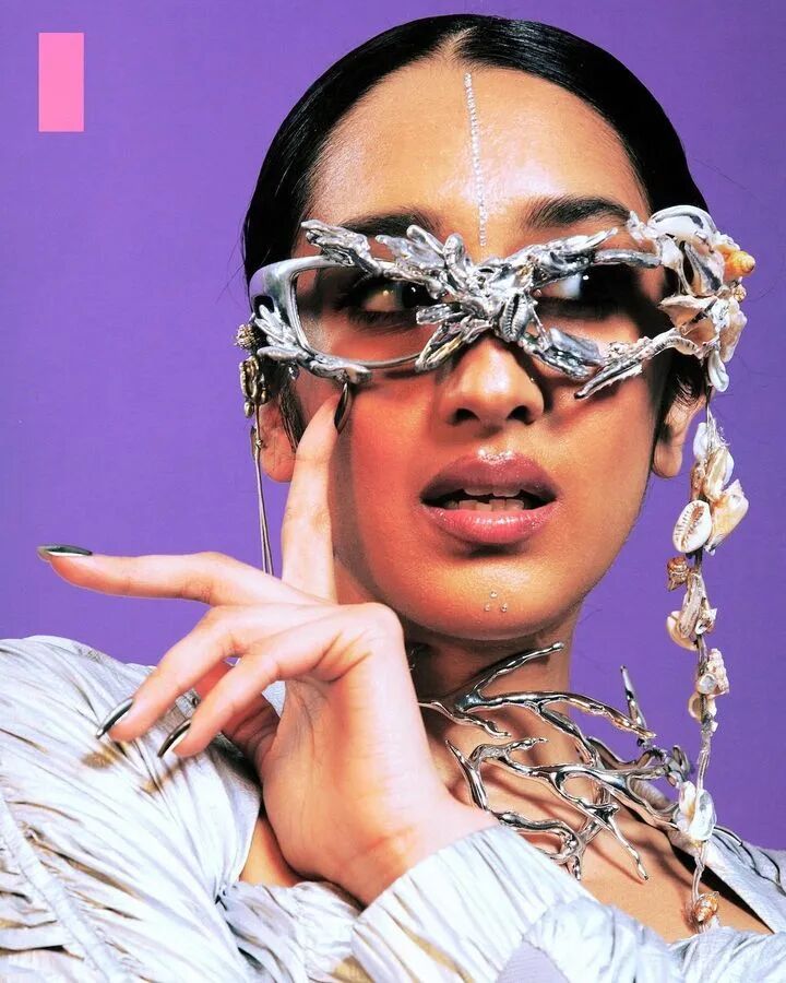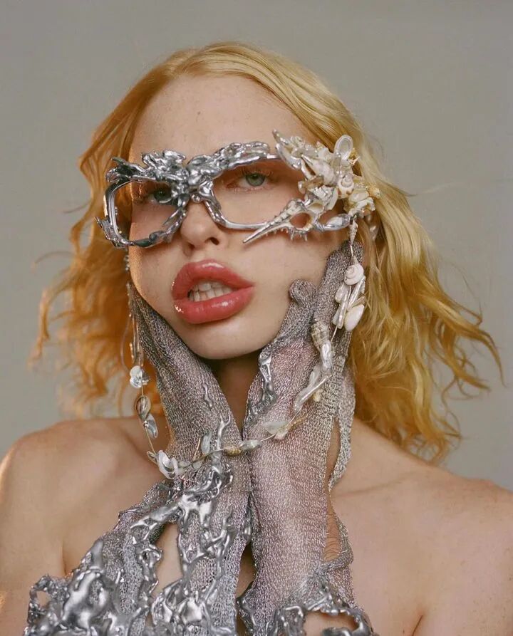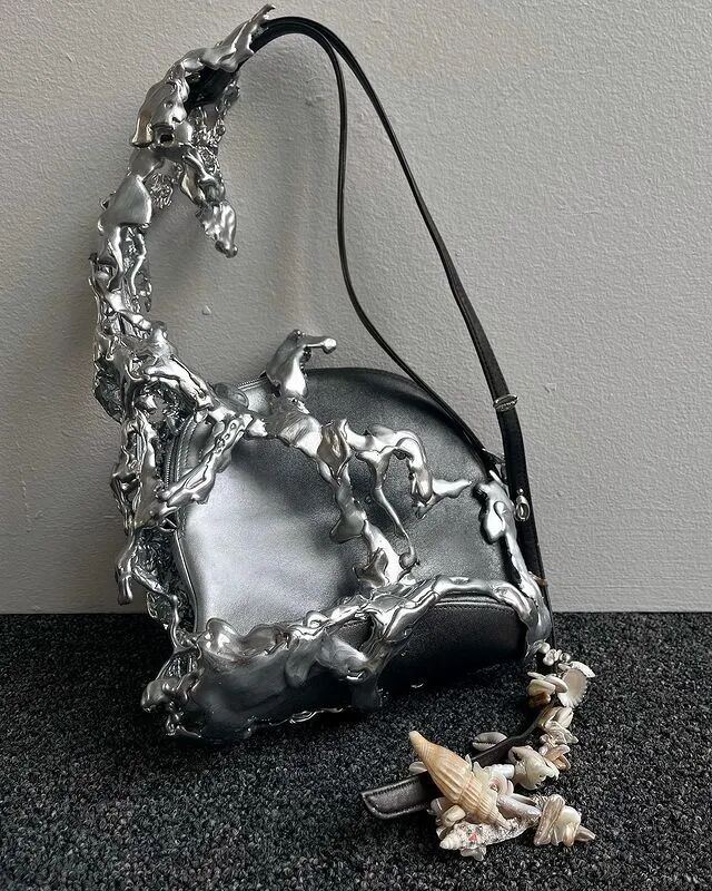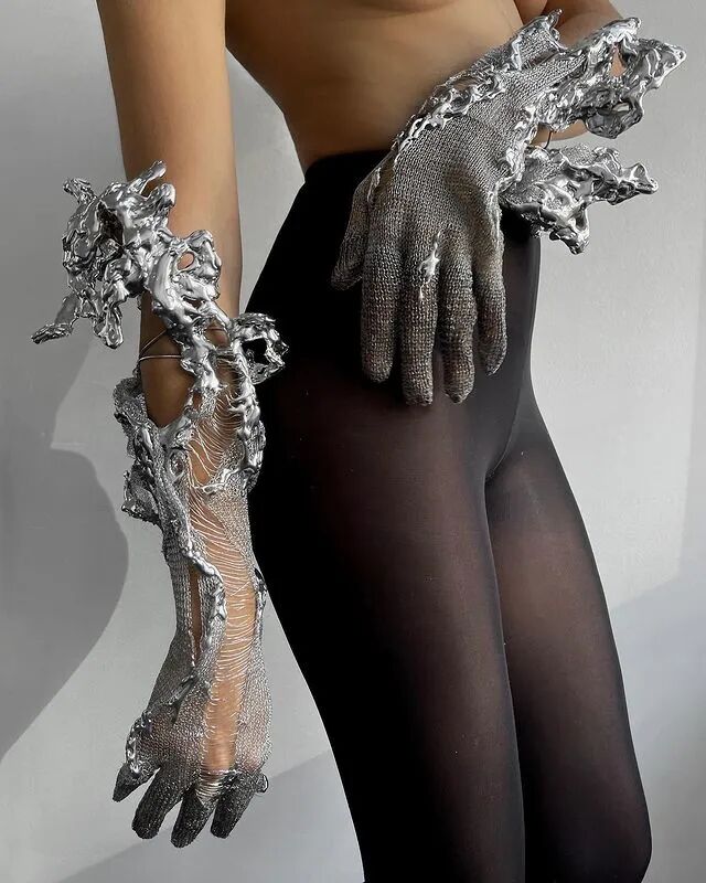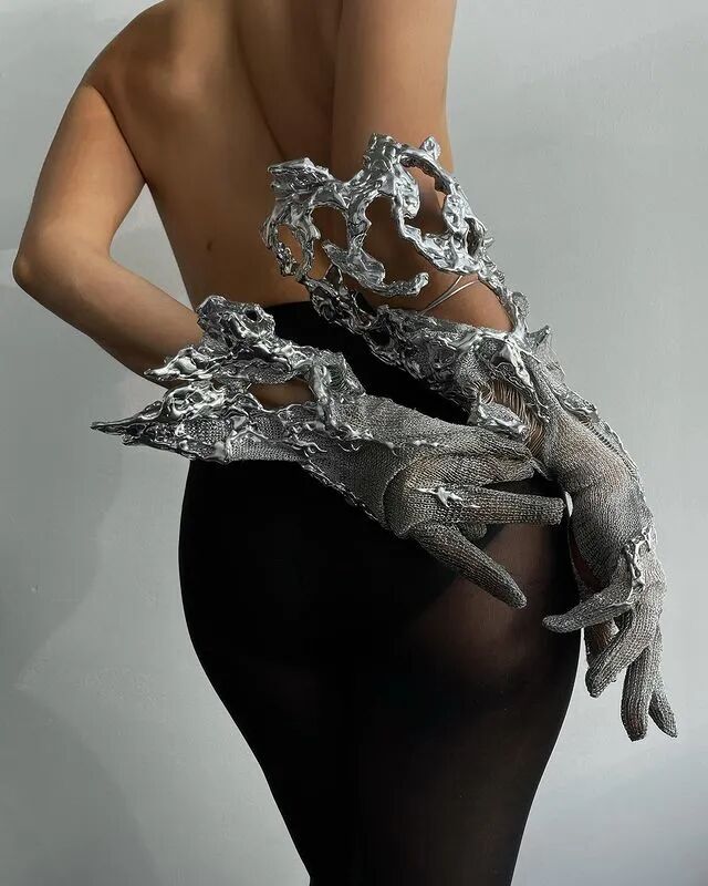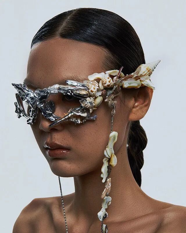 将金属通过数字技术装饰在包包、鞋子、眼镜、手套等服装配饰上,形成新的视觉形态。