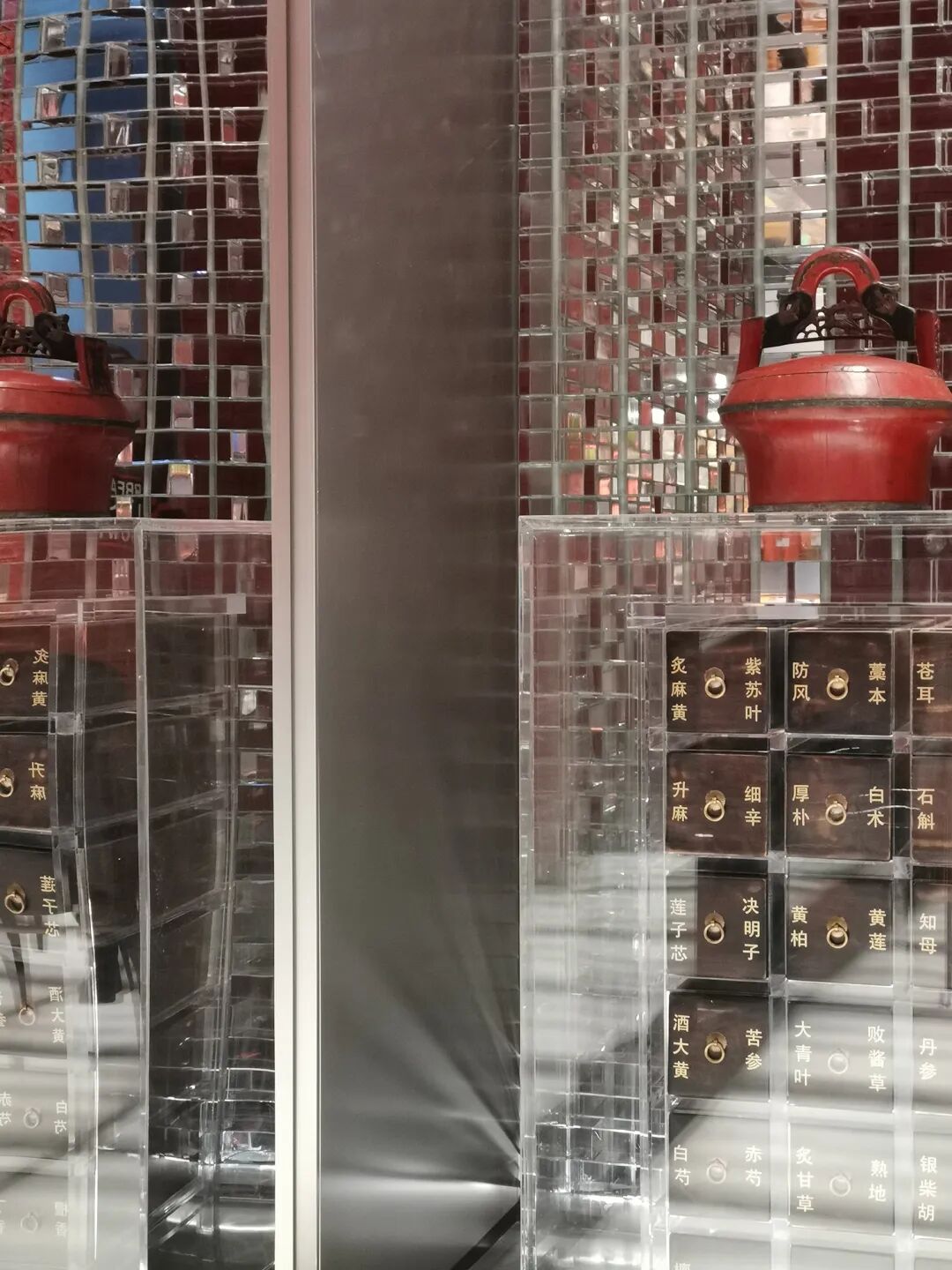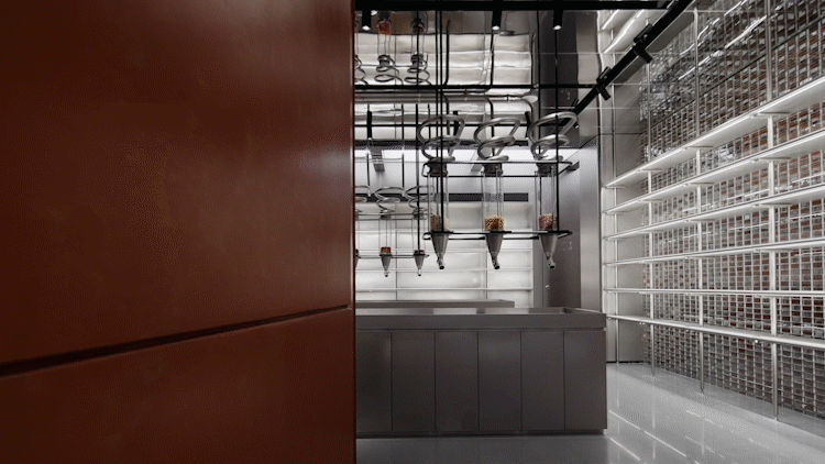在成都的旗舰店中,WUUX无象空间通过应用传统的中国元素——红墙、琉璃瓦、斗拱、青砖、柱廊和堆积起来的旧药柜,加强了知嘛健康的皇家身份,在由金属、玻璃和其他现代材料构建的空间框架内产生了不同寻常的效果。这是设计师第一次如此毫无保留地向公众展示知嘛健康皇家御医的DNA,这有助于该品牌在成都实现本土化。同时,品牌形象也依托瑰丽的皇家文化,扎根于成都。