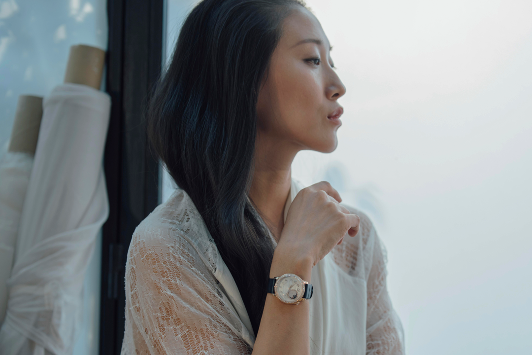 作为高级定制服设计师,殷亦晴则演绎江诗丹顿Égérie伊灵女神系列,这个女性系列腕表的设计灵感本身便是来自高级定制服。