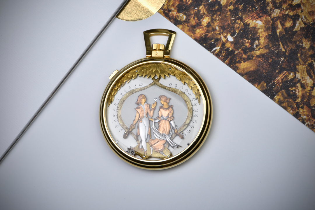 逆跳显示与江诗丹顿有着深厚历史渊源,江诗丹顿Heritage典藏时计中就有数枚珍藏,一枚上世纪初的双逆跳怀表,表盘上的男生手臂指示小时,女生则指示分钟。
