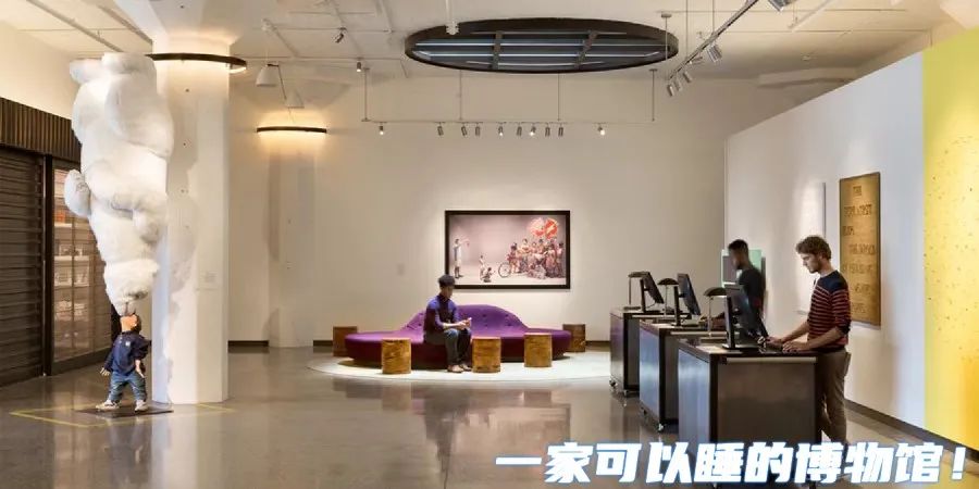 博物馆的白色立方体式油罐箱被改造成一个时装陈列室,同样覆盖着米色的奶油色窗帘。在展示空间内组织了七排分层的淡灰白色窗帘,朝向油罐中心依次长度变短。
