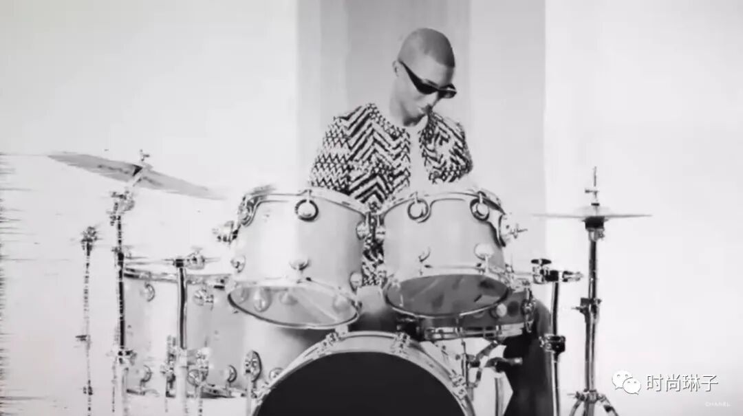 Chanel 香奈儿2022秋冬高级定制时装秀以音乐制作人兼香奈儿形象大使Pharrell Williams 架子鼓打击乐的视频拉开帷幕。
