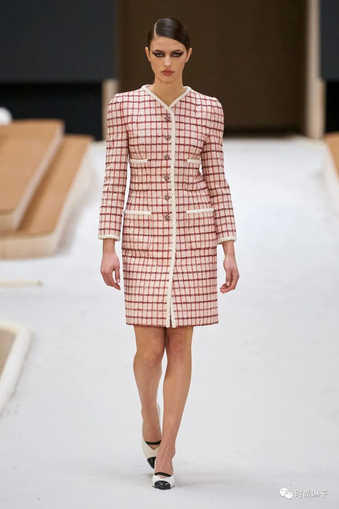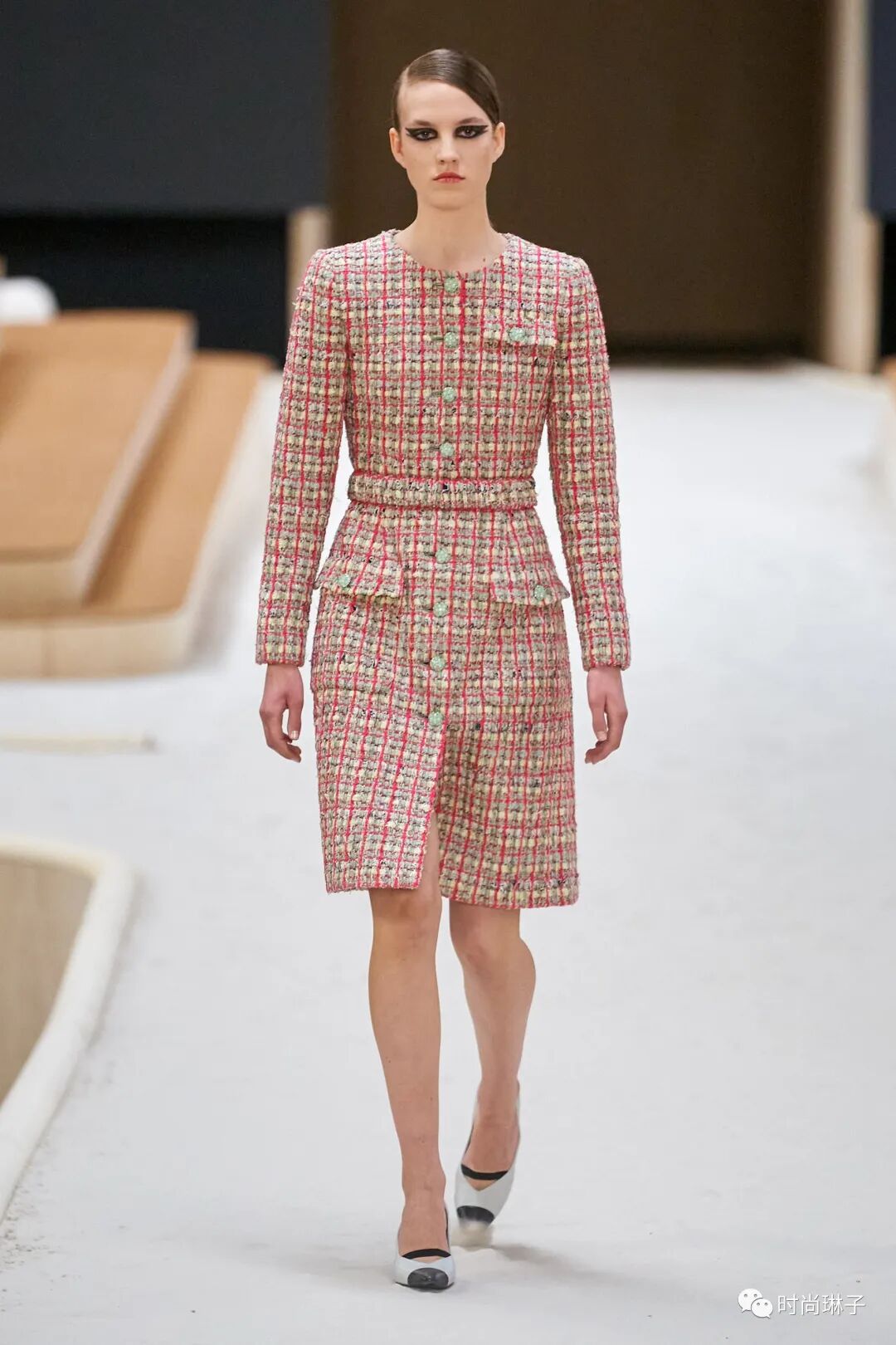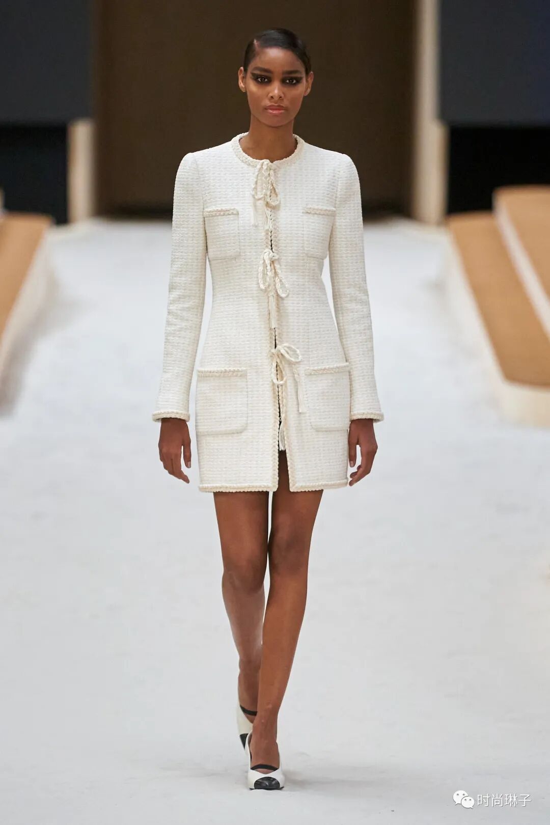 香奈儿 Chanel 2022春夏高定秀以品牌标志性的花呢套装或连衣裙拉开帷幕,从昨天的迪奥高订秀到今天的香奈儿,该季知名品牌的高定系列不约而同地采用简约的设计手法,将优雅和实用性结合。