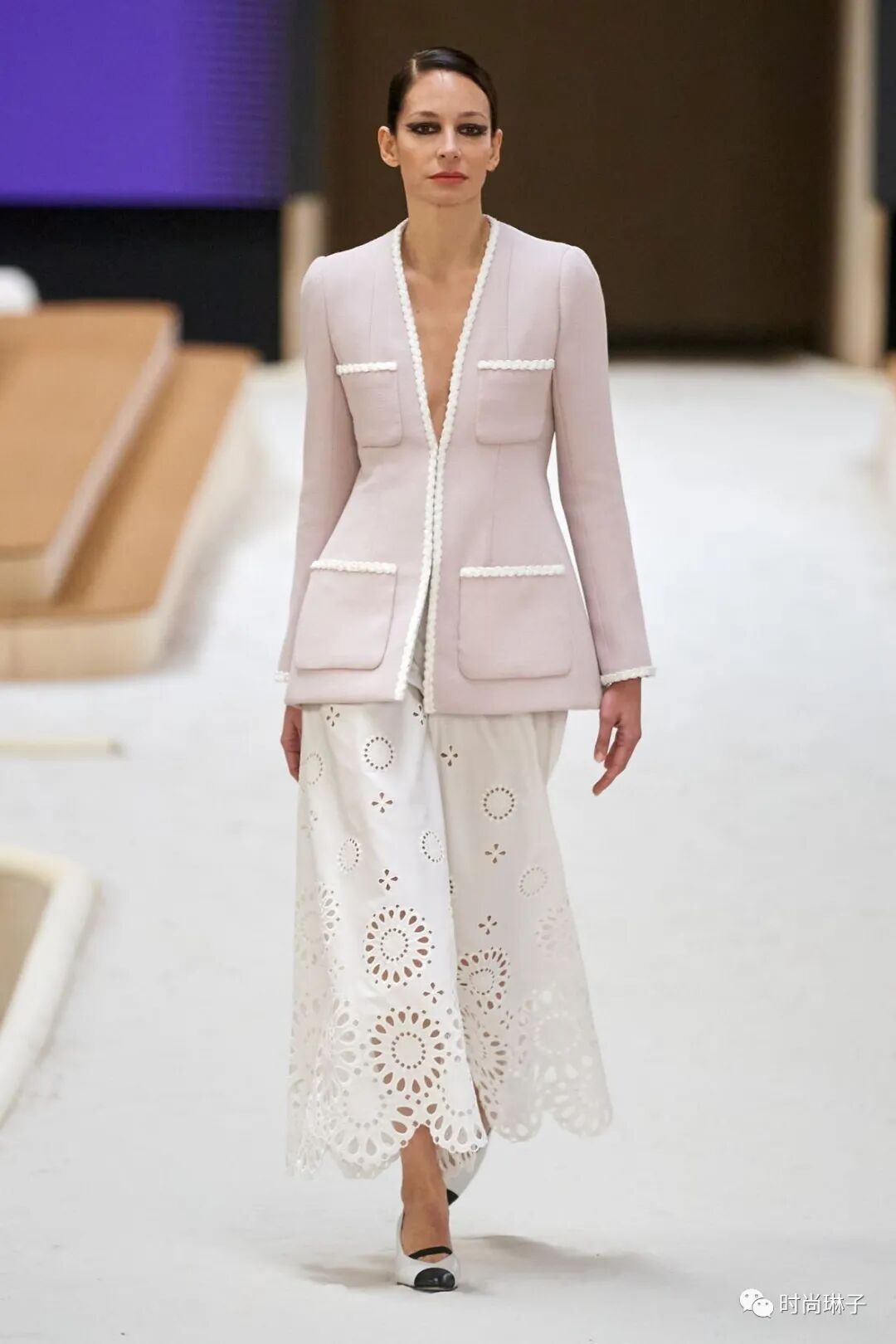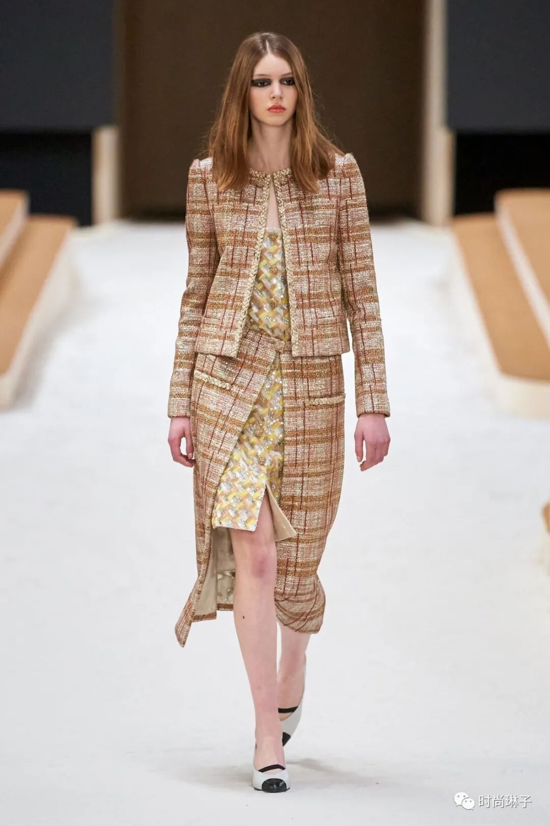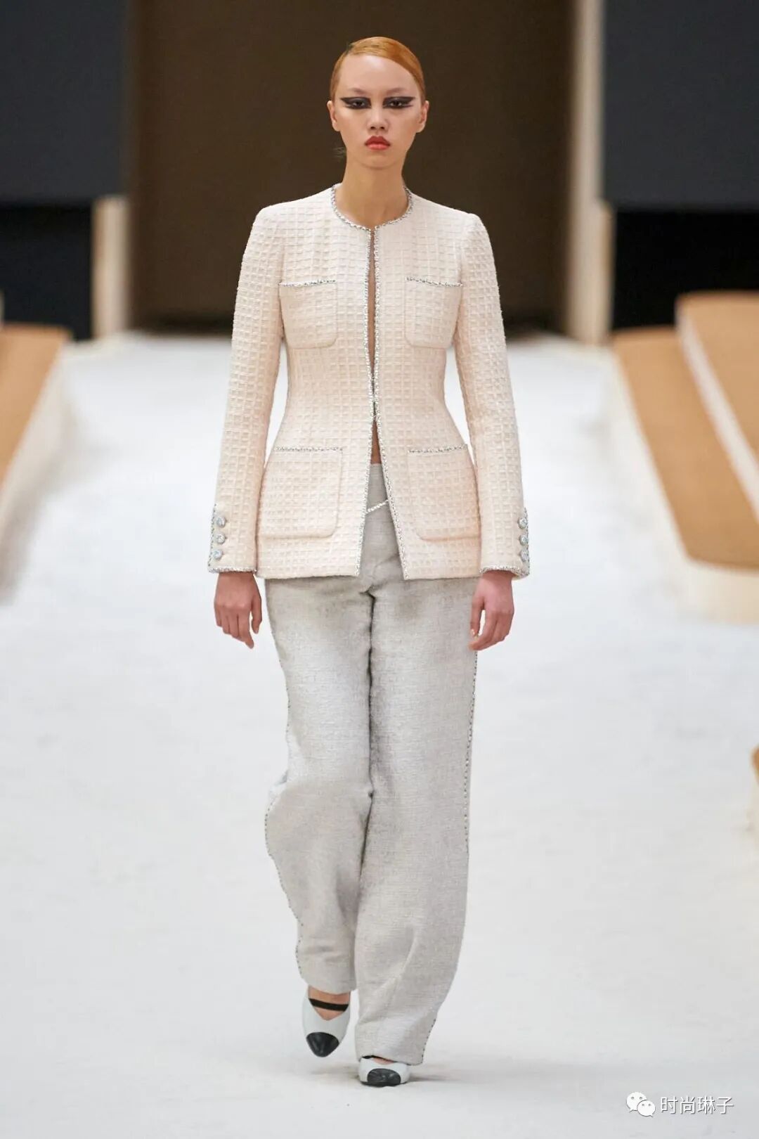 香奈儿 Chanel 2022春夏高定秀以品牌标志性的花呢套装或连衣裙拉开帷幕,从昨天的迪奥高订秀到今天的香奈儿,该季知名品牌的高定系列不约而同地采用简约的设计手法,将优雅和实用性结合。