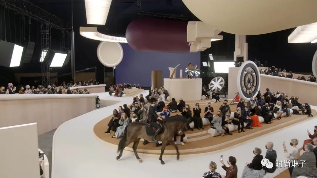 香奈儿2022春夏高级定制系列时装秀正式开始前,女骑手Charlotte Casiraghi从屏幕中出现到现实秀场中,在真实与梦幻之间打造出一个视觉宇宙。