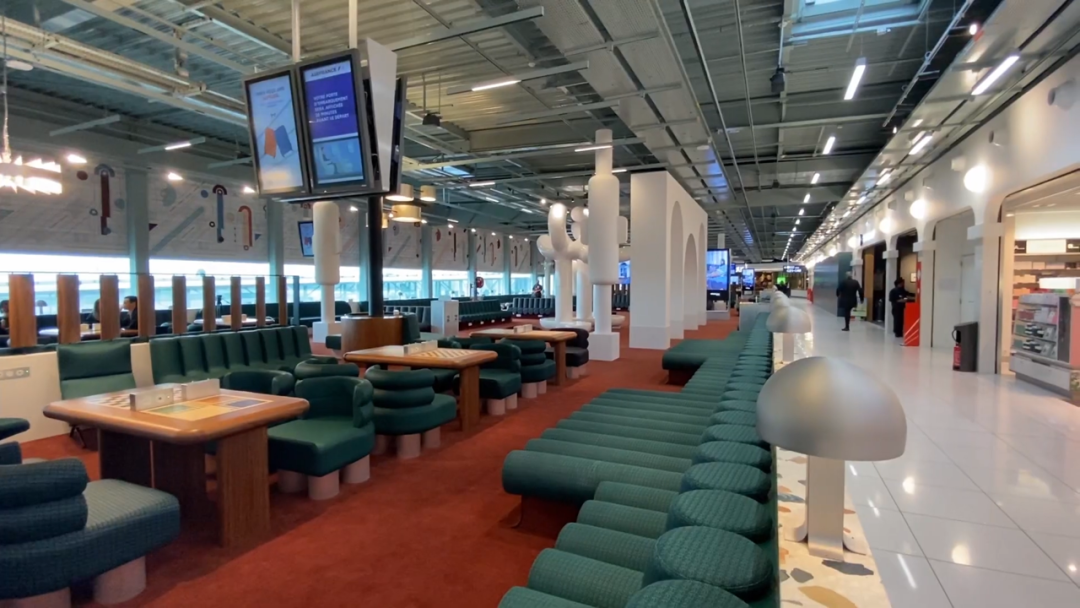 设计师将具有六七十年代特有氛围的巴黎传统家具和装饰艺术风格引入室内空间,为乘客营造时尚优雅、放松身心的候机体验。
