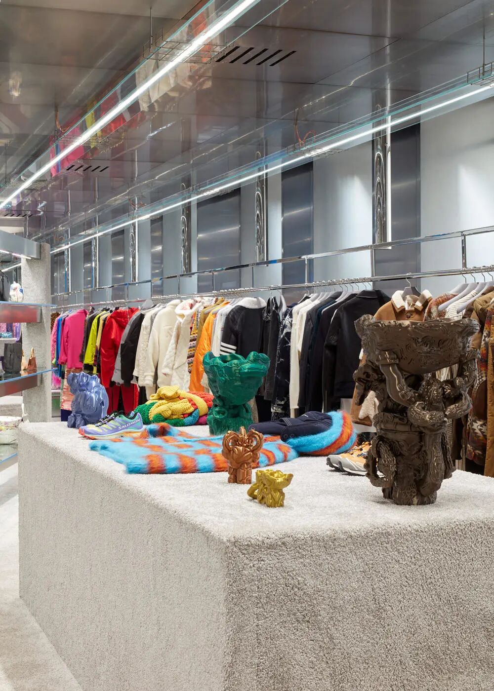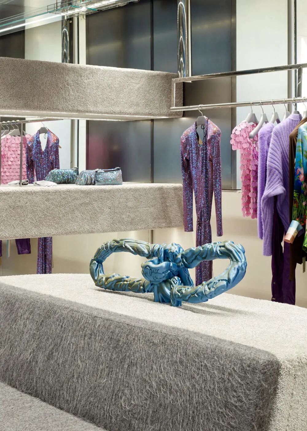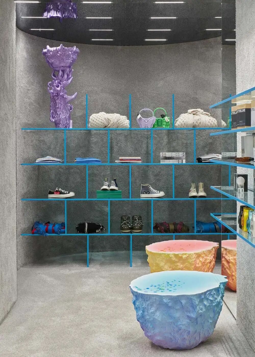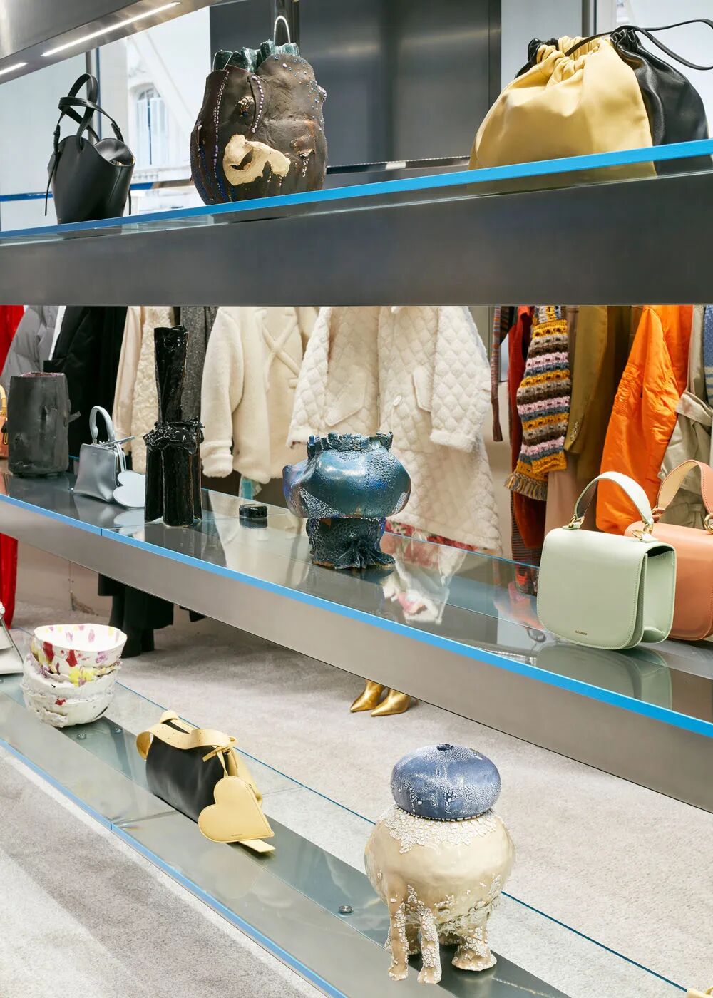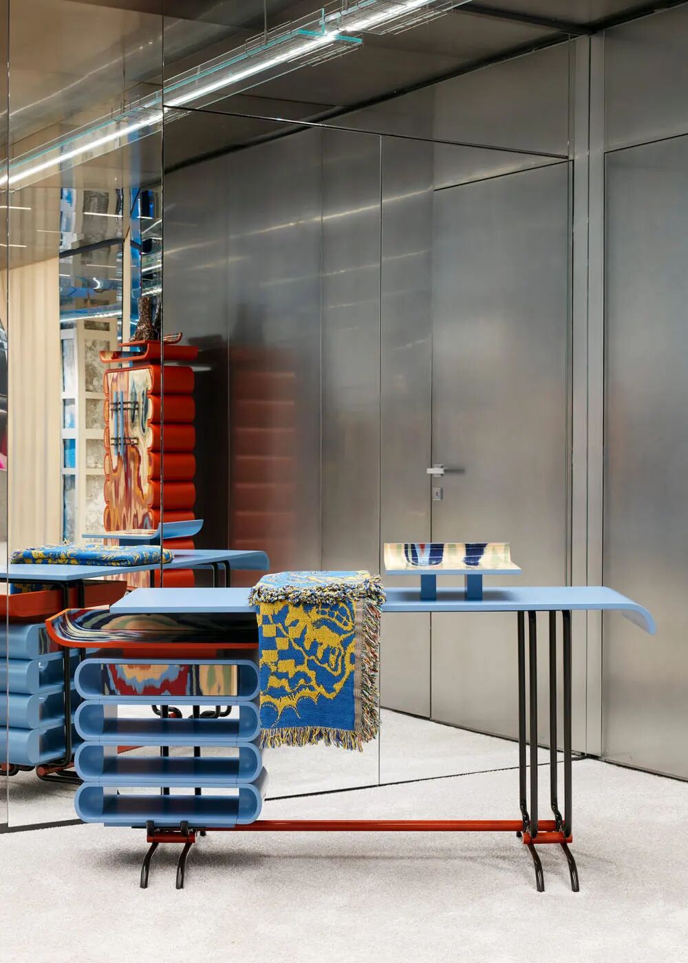 设计元素在空间中与时尚物品无缝融合,放在货架上和配饰旁边的口袋上。乍一看,很难辨别哪个项目属于哪个领域。色调有助于创造这种融合,因为选择的设计单品与精品店环境的色调保持一致。在同样的策展方法中,尼卢法的一些作品被作为装饰特征,而其他作品则作为空间中使用的功能对象。该系列在名为“快闪”的专用部分在线展示。