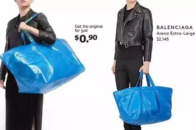 不仅如此,还有我们熟知的宜家同款购物袋,SS17男士小羊皮托特包,售价2145美金,约14200人民币,在宜家仅需9毛钱就可以get到同款。