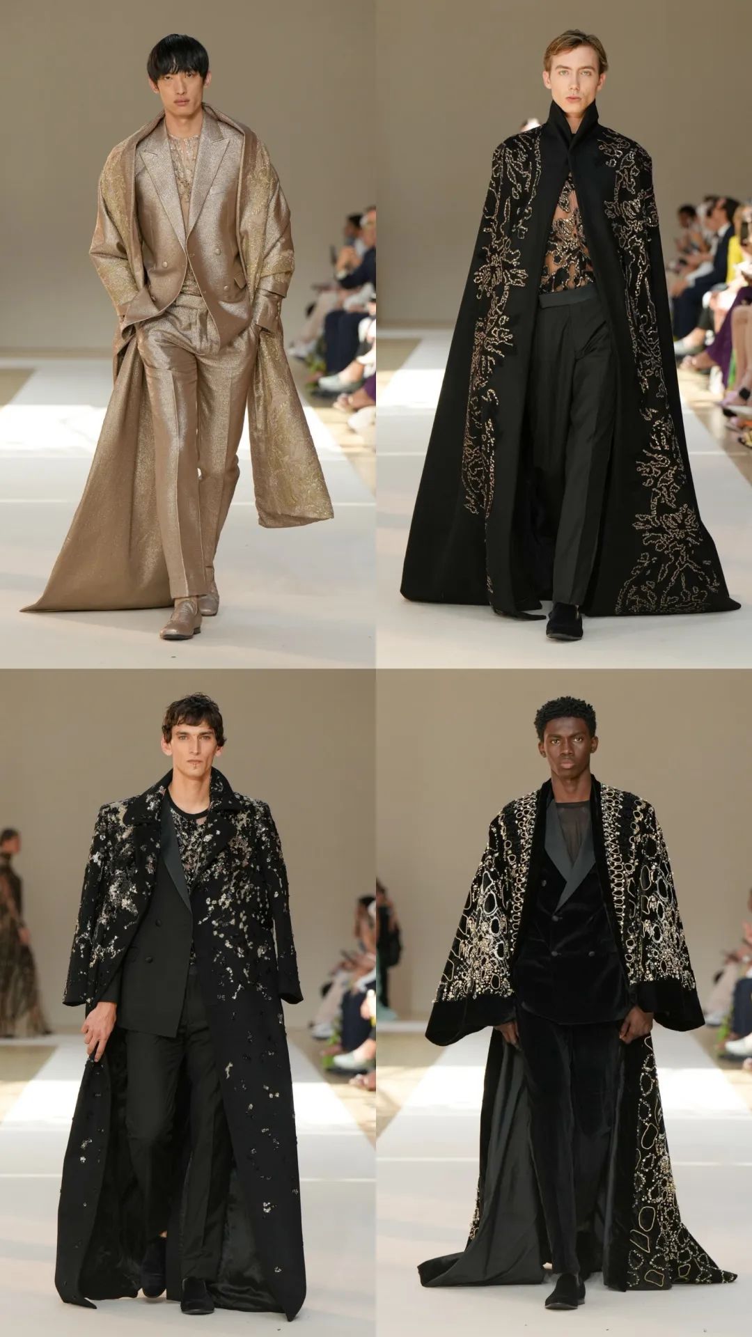 本季 Elie Saab 首次推出了8套男装高定,均是披挂大长袍的贵公子形象,非常华丽大气;而女装高定部分就不用多提了,必定是仙裙云集,而且这一季也是美出新高度,波光粼粼的裙摆宛如美人鱼。