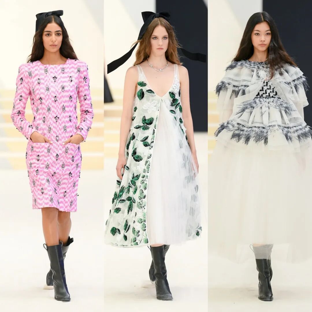 乍一看简单得不像「高定」,基础常规的款式中却蕴藏着手工刺绣的细节之美,搭配的珠宝首饰恰到好处;部分蝴蝶结元素点缀其中,更具少女感;本季还加入的一抹绿,特别清新宜人。
