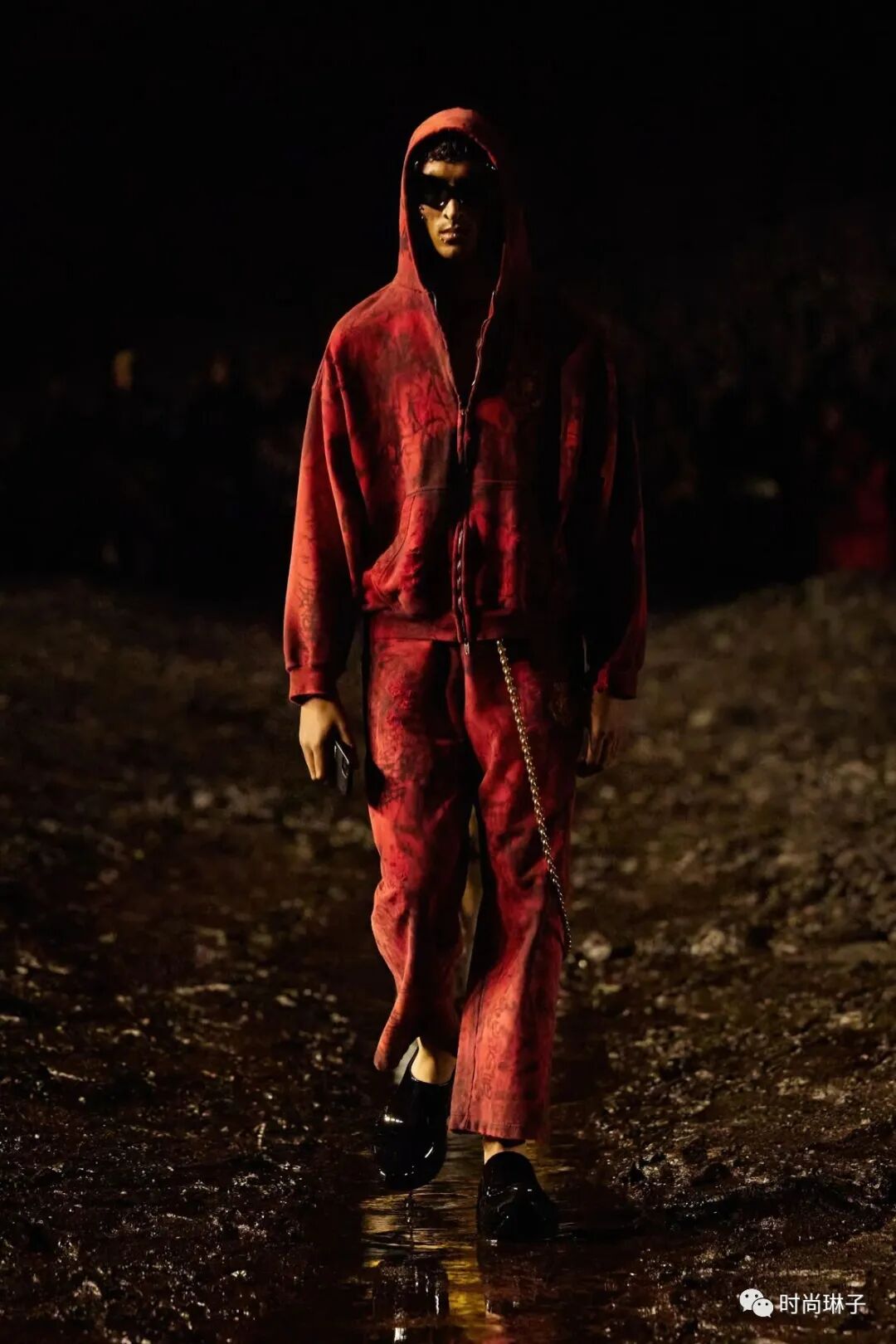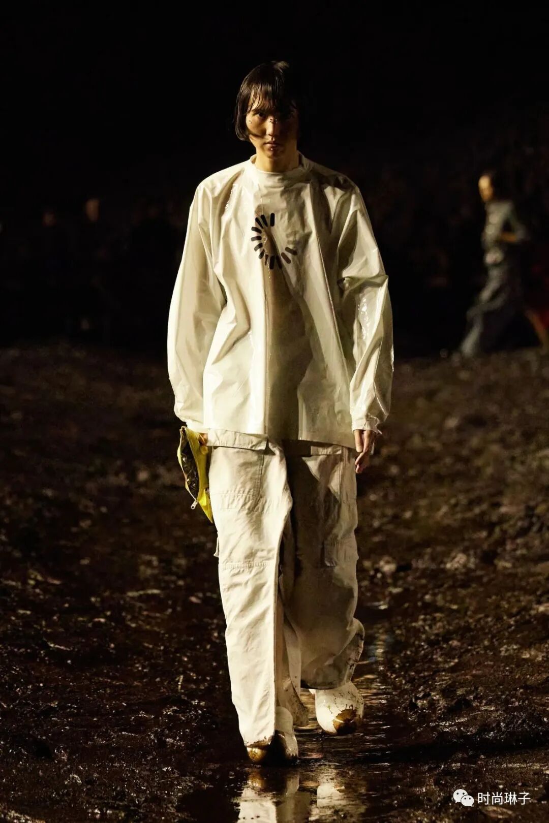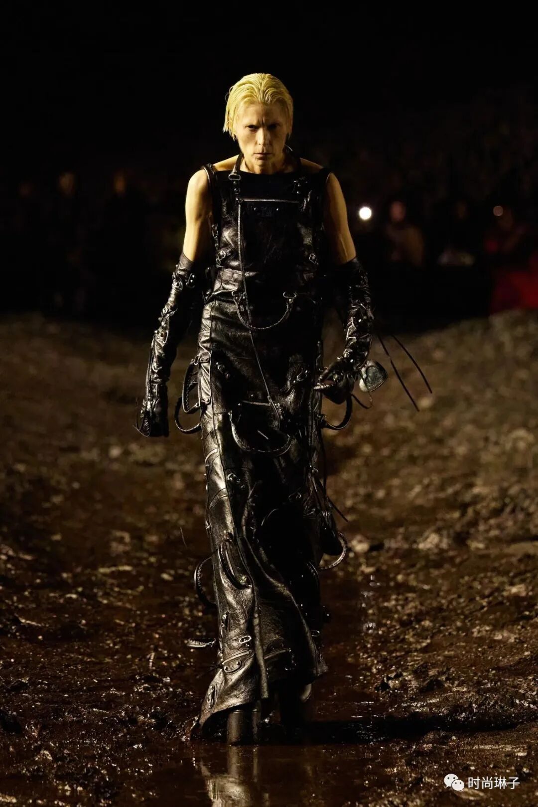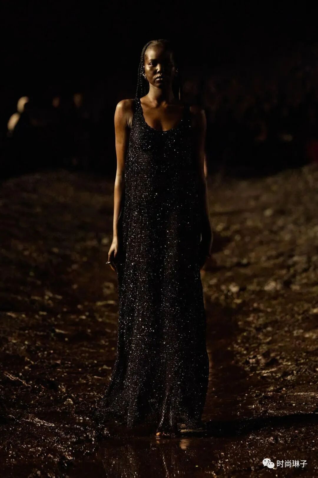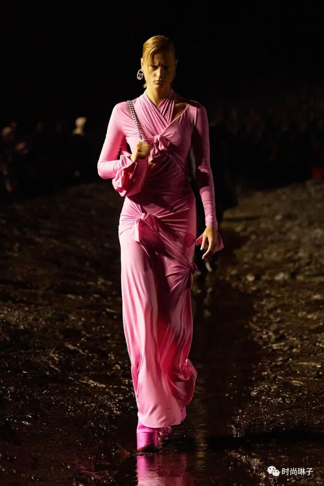 巴黎世家2023夏季大秀秀场以泥泞的路面为T台,被现实打击的“鼻青脸肿”的模特们,穿着夹克、牛仔裤、运动衫、长裙........,依然在生活这条道路上勇往直前。