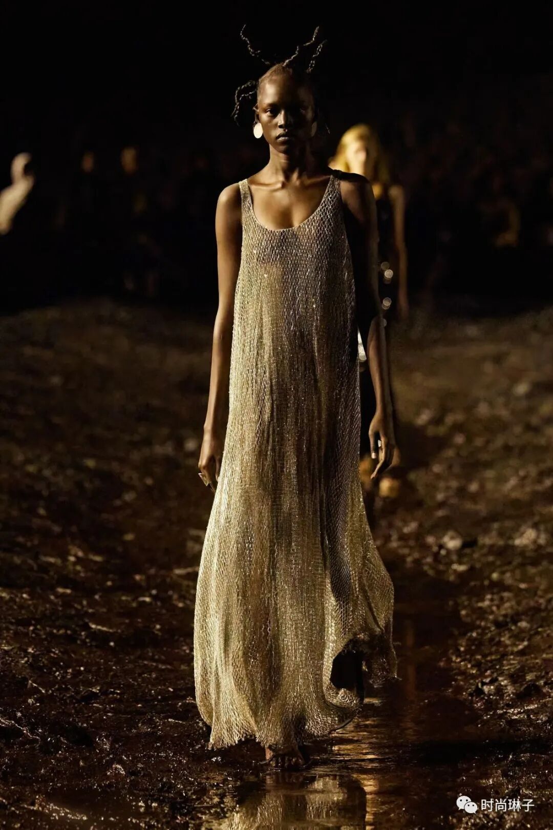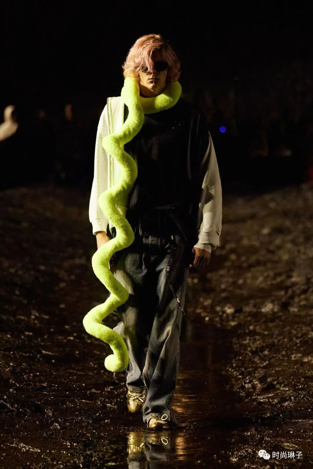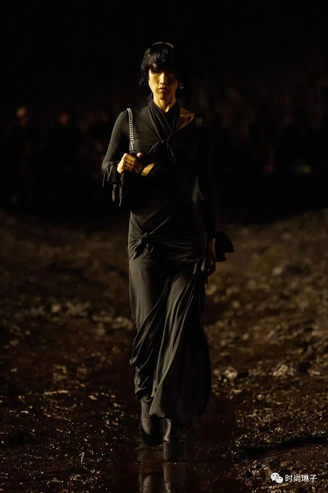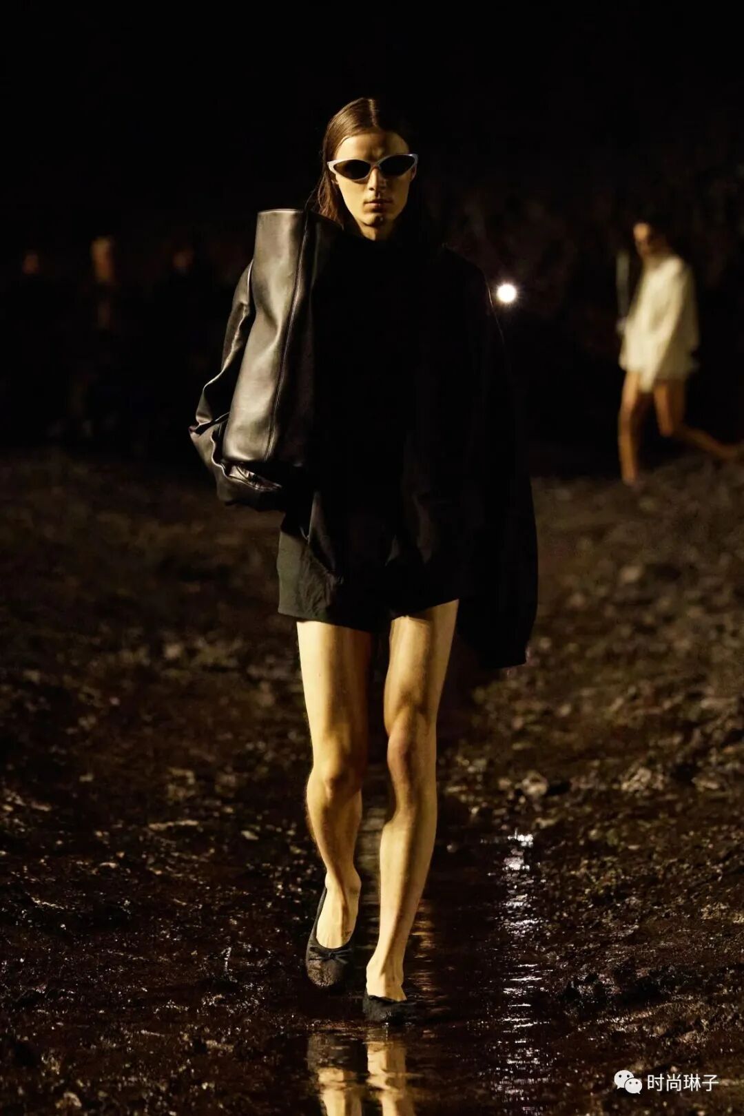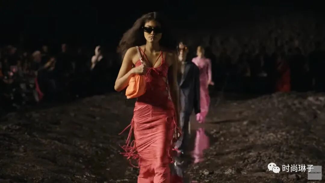 巴黎世家2023夏季大秀秀场以泥泞的路面为T台,被现实打击的“鼻青脸肿”的模特们,穿着夹克、牛仔裤、运动衫、长裙........,依然在生活这条道路上勇往直前。