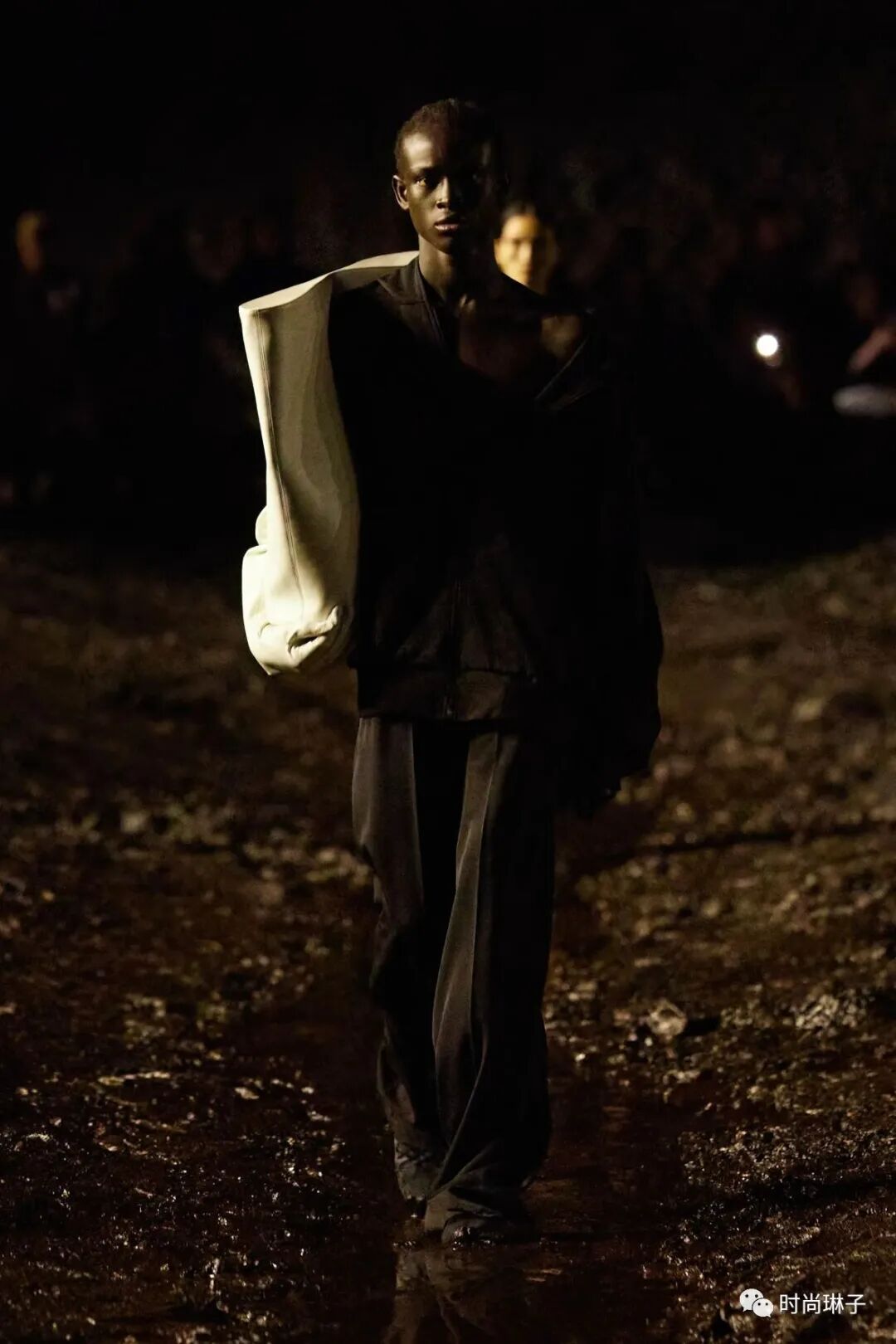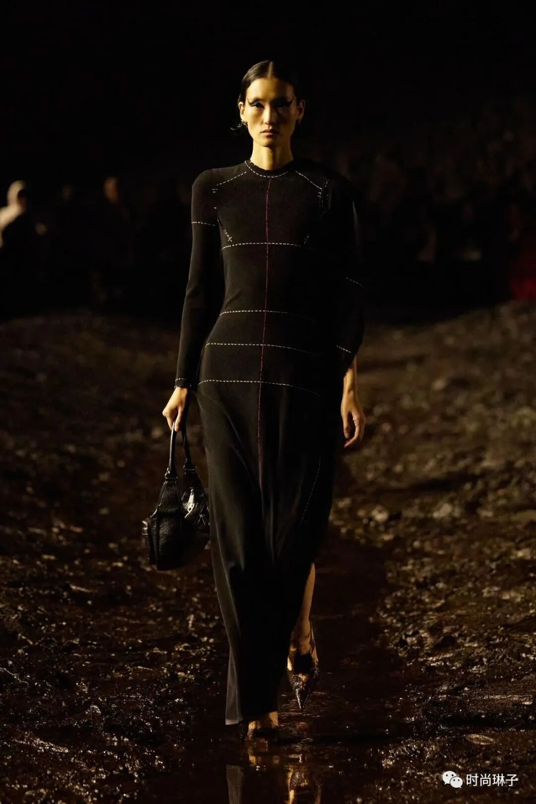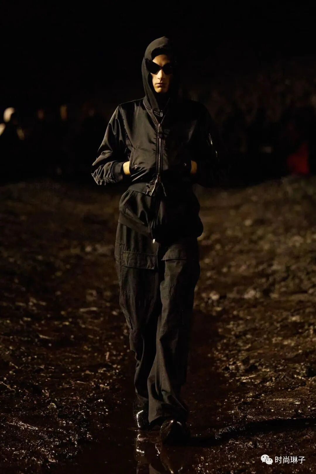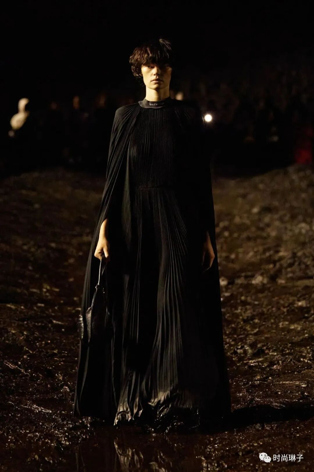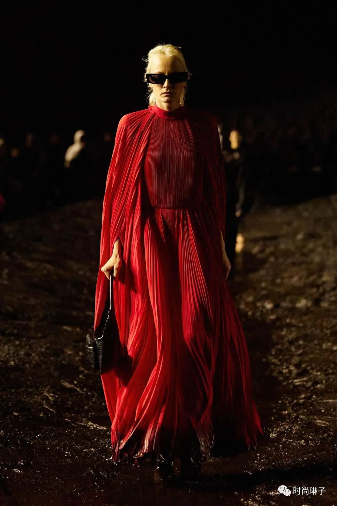 巴黎世家2023夏季大秀秀场以泥泞的路面为T台,被现实打击的“鼻青脸肿”的模特们,穿着夹克、牛仔裤、运动衫、长裙........,依然在生活这条道路上勇往直前。