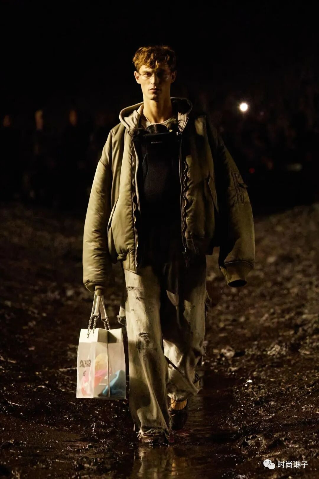 Demna Gvasalia -巴黎世家创意总监 “我讨厌盒子,我讨厌标签,我讨厌被贴上标签并放在盒子里。社会、互联网和整个世界都喜欢这样做,因为这样感觉很安全。 一个人需要有勇气和毅力才能成为真正的自己。每一天都是捍卫自己这个独特身份的战场。你越是努力做你自己,你就越容易被社会打脸。但每个人都不同又是多么美好的存在。 挑战就是在被痛打和击倒之后还能站起来继续做真实的自己。 时尚界最喜欢盒子和标签。奢华,不是奢华,街头,时装,好,坏,嗡嗡声,病毒,都一样,谁在乎。将奢华时尚装进精美、独特且视觉上昂贵的盒子里是局限的且相当老派的。时尚中的个人特色被贬低为一些名人故事中的帖子所决定的伪趋势。 我决定不再解释我的系列和用言语说明我的设计,但会表达一种心态。因为时尚是一门视觉艺术,我们所需要的只是通过别人的眼睛看到它。最好的时尚不需要一个故事包装来卖给某些人。你要么喜欢,要么不喜欢。 这场时装秀的布景是对挖掘真相、脚踏实地的隐喻。让我们让每个人都能成为任何一个人,彼此友爱,而不是制造战争。