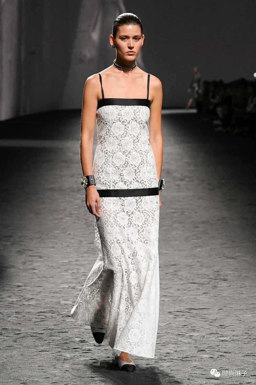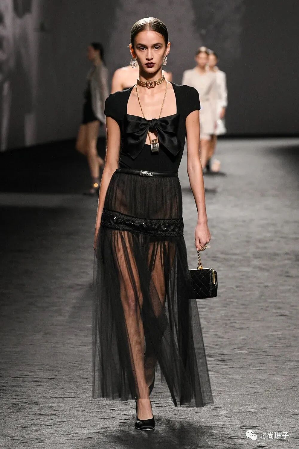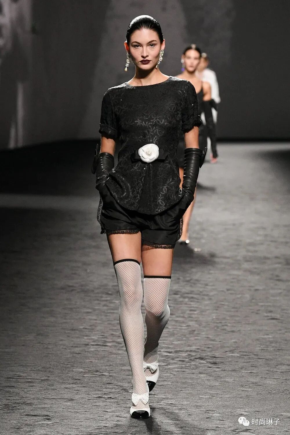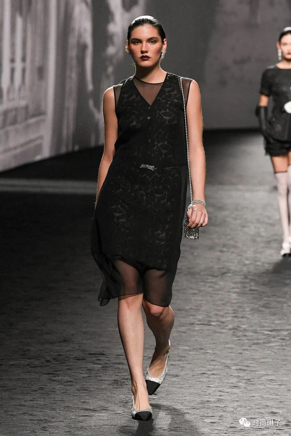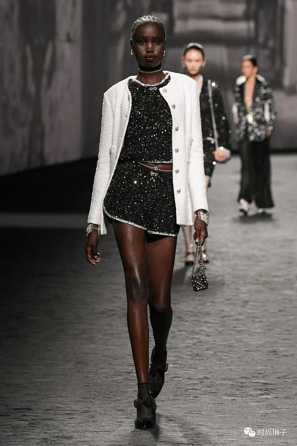 香奈儿2023 春夏系列时装秀在一系列黑白服饰中结束,致敬黑白影片的同时,也诠释了把美丽当成一种态度的女性宣言。
