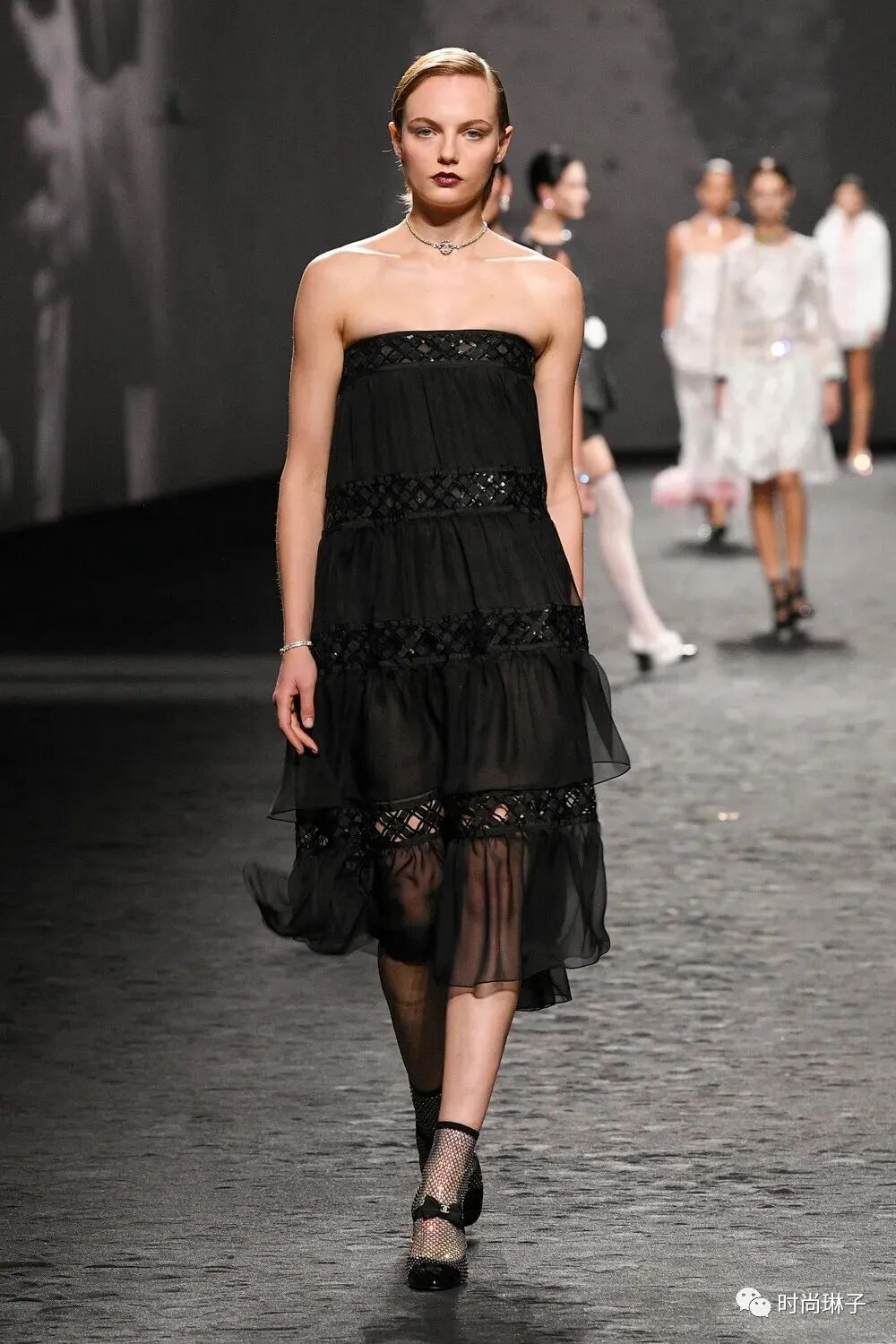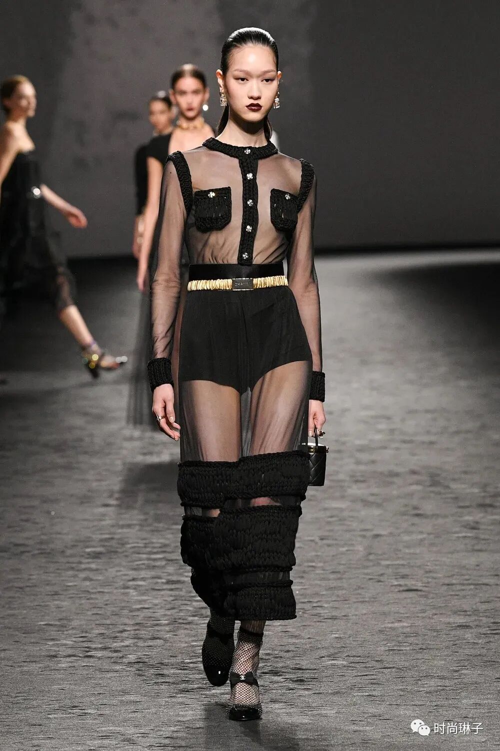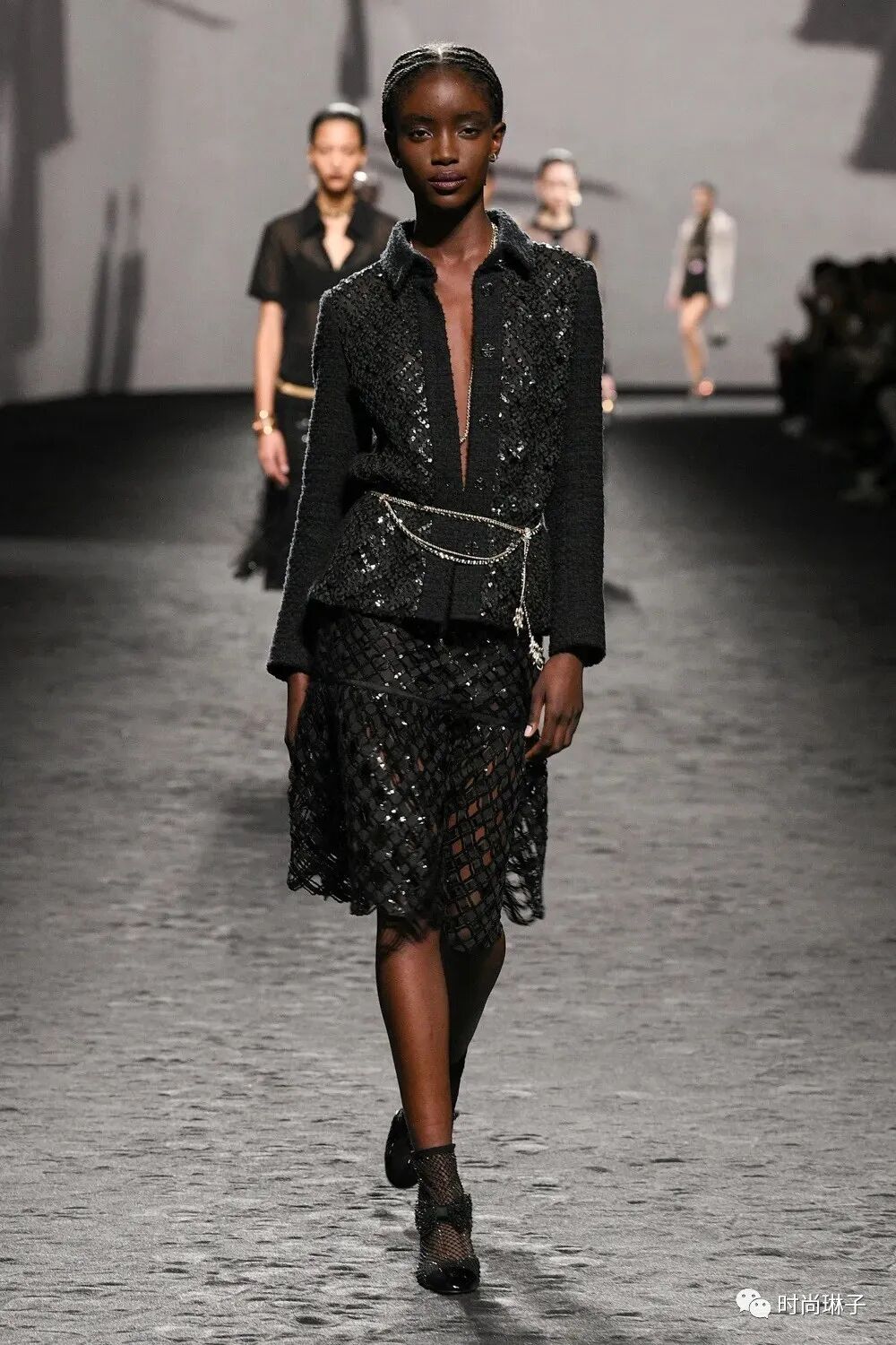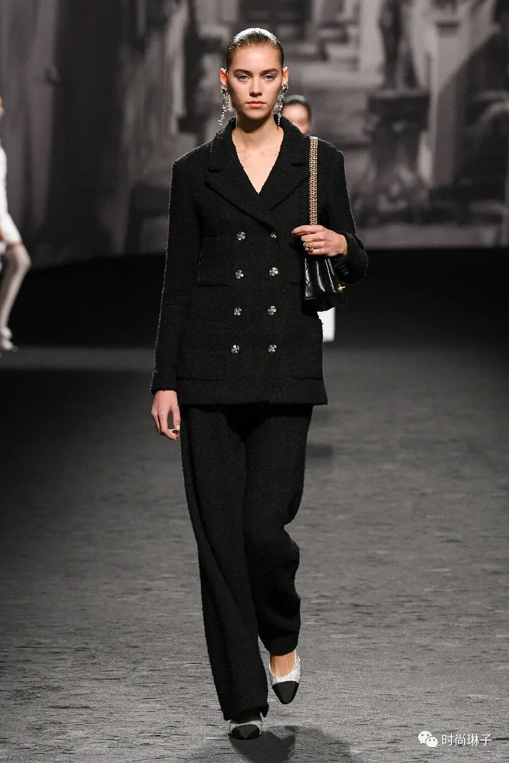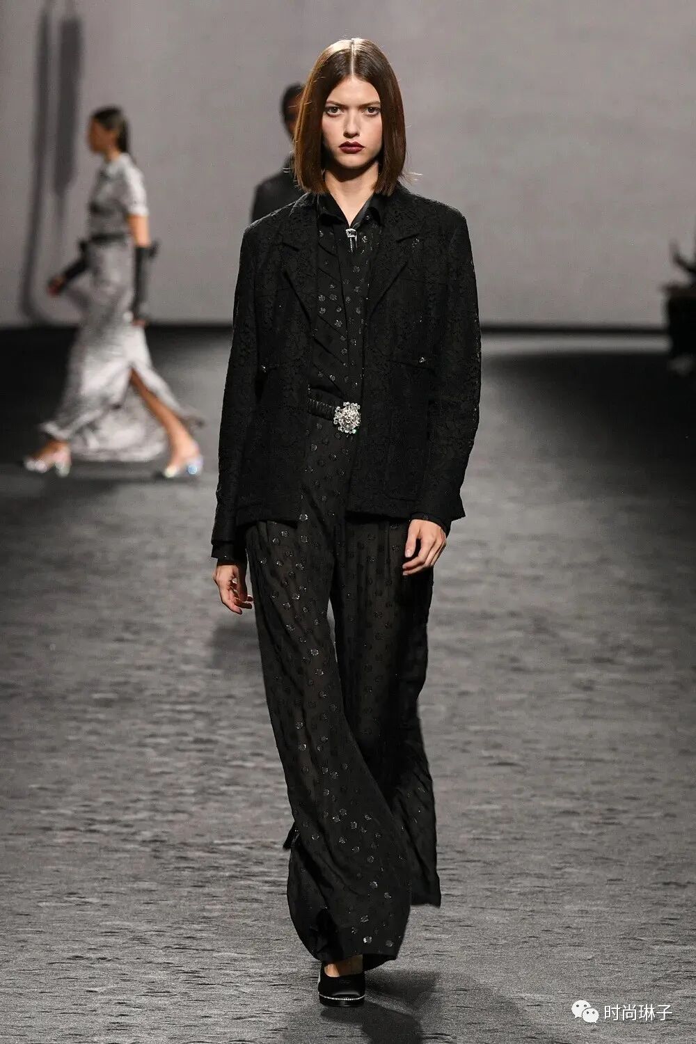 香奈儿2023 春夏系列时装秀在一系列黑白服饰中结束,致敬黑白影片的同时,也诠释了把美丽当成一种态度的女性宣言。