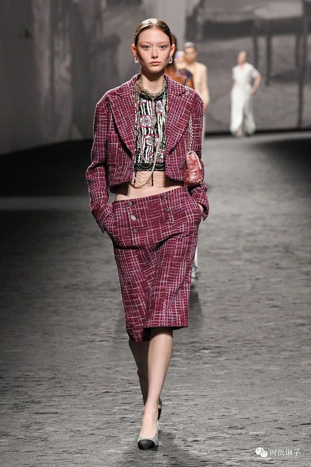 从粗花呢套装,到珍珠配饰,该季一如既往的延续了香奈儿品牌的经典。
