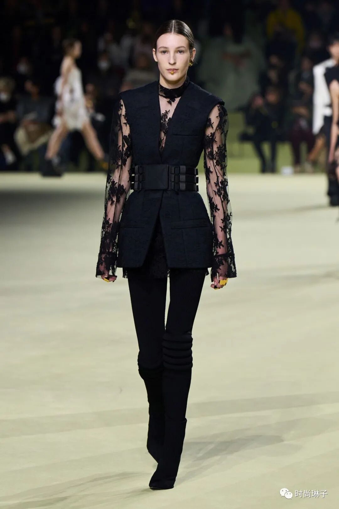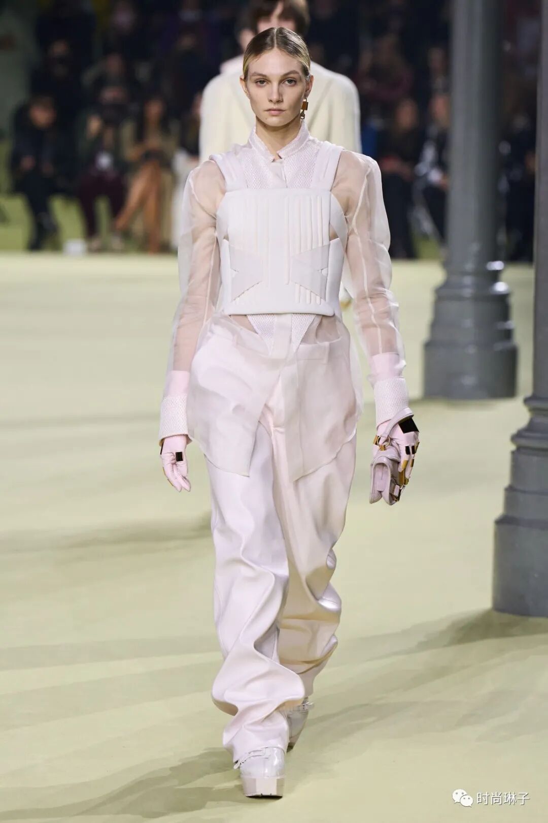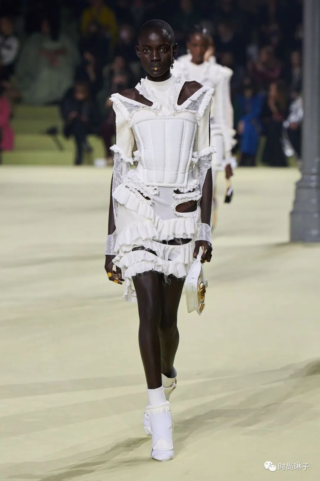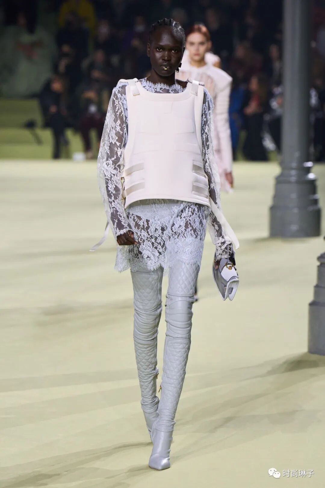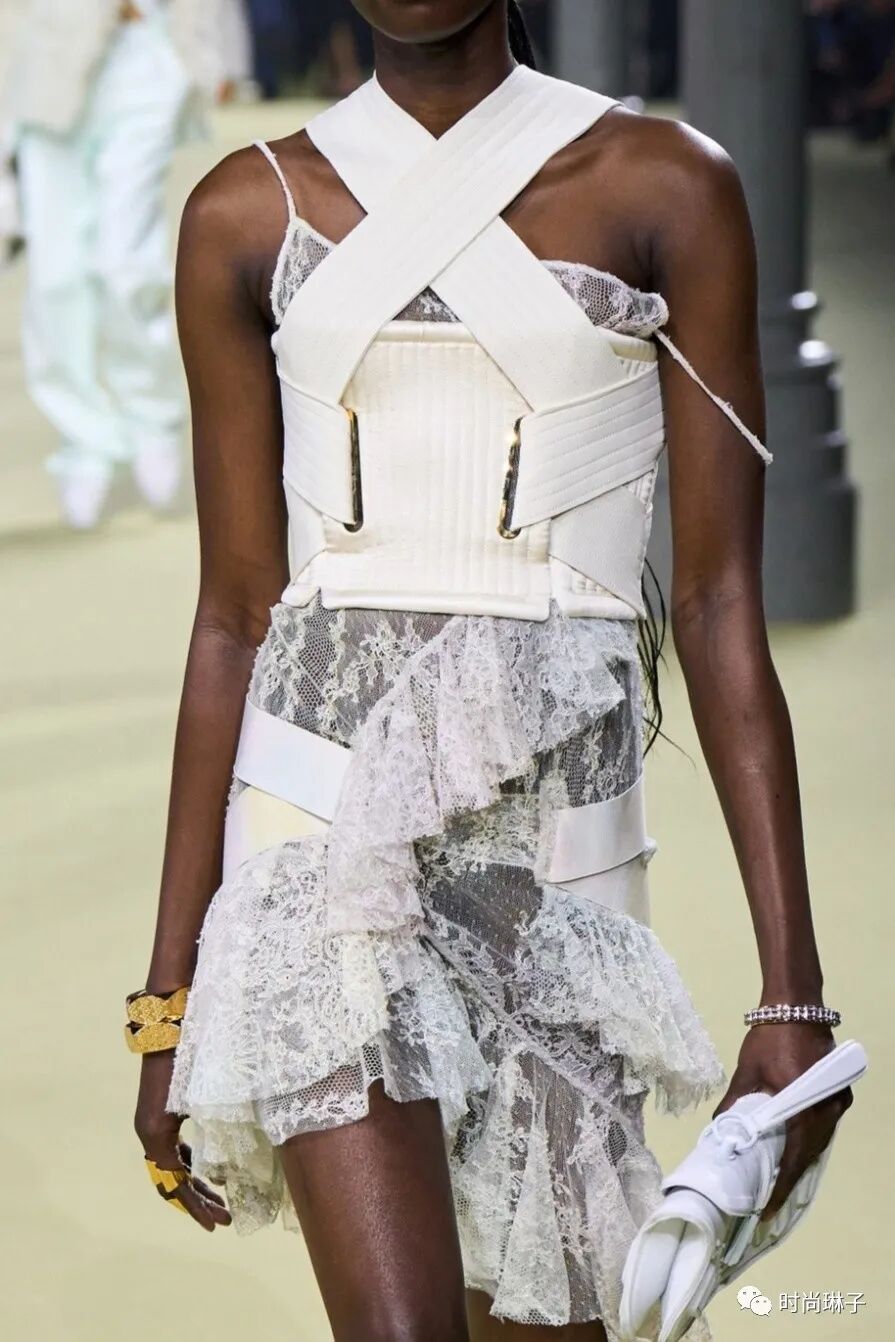 充满反差感的透明蕾丝与盔甲元素在设计中全然演绎,传递着真实与透明的特殊力量。
