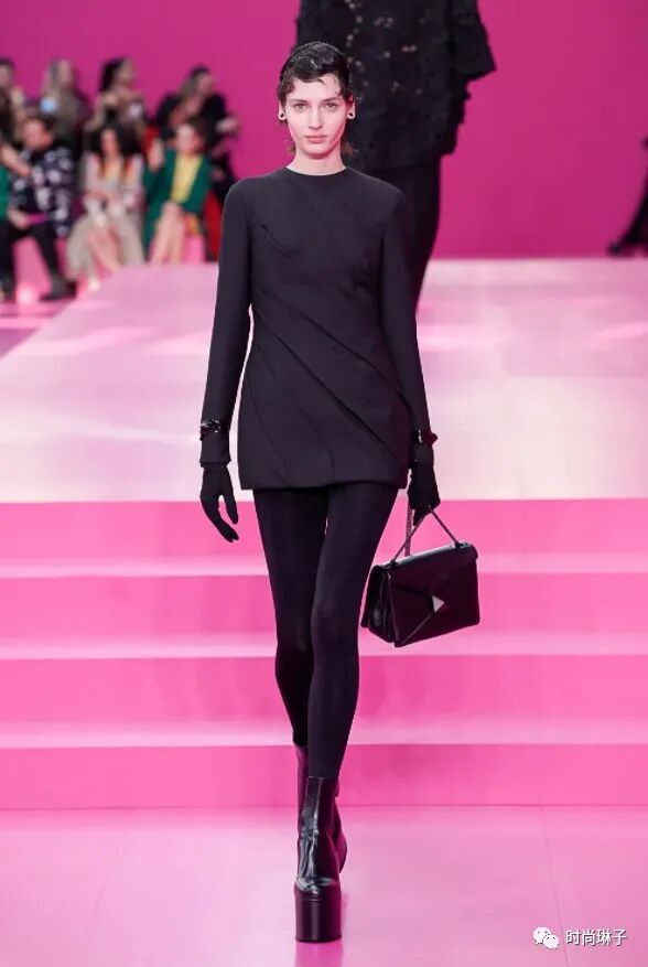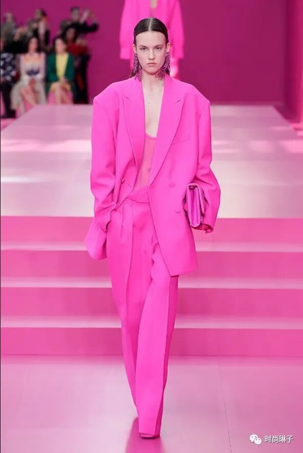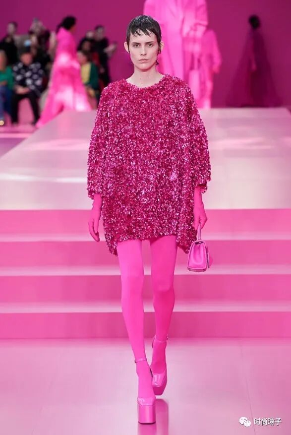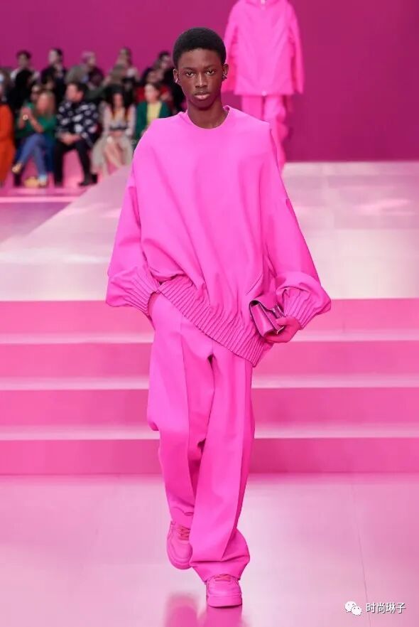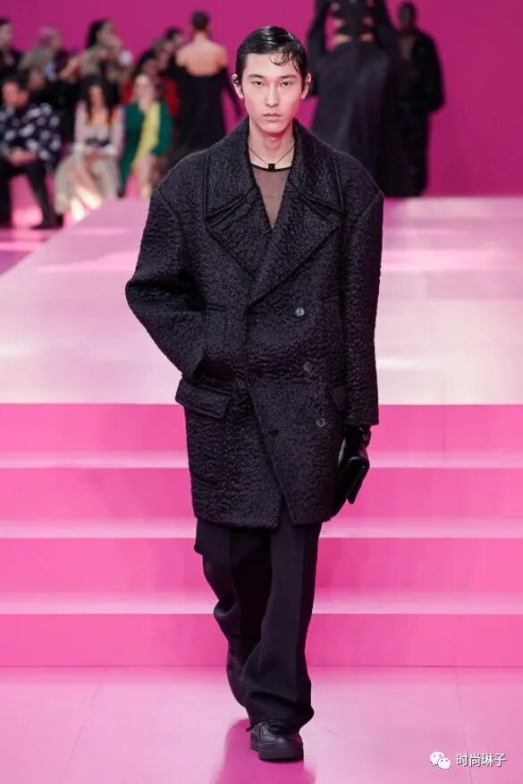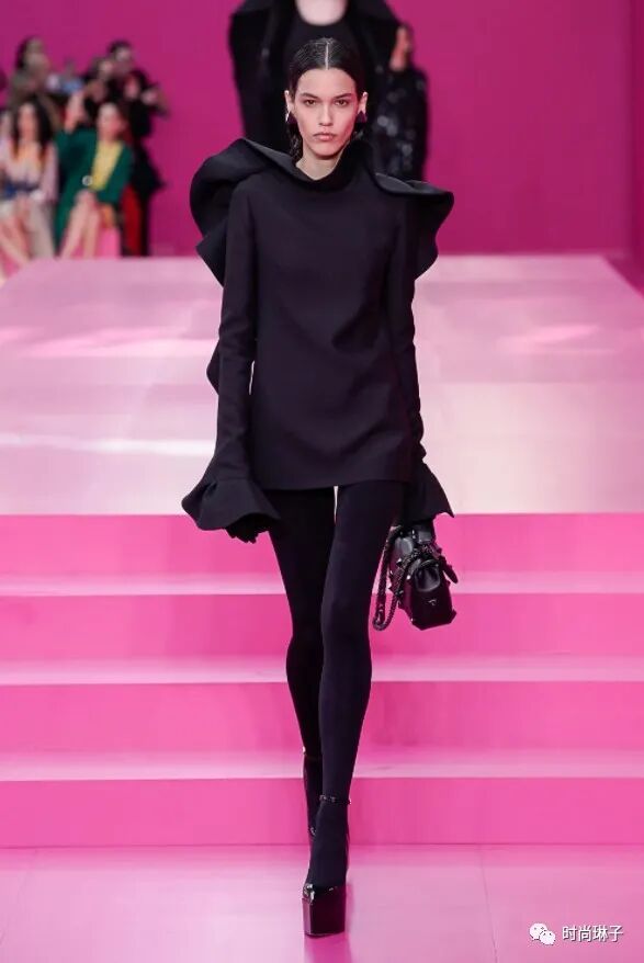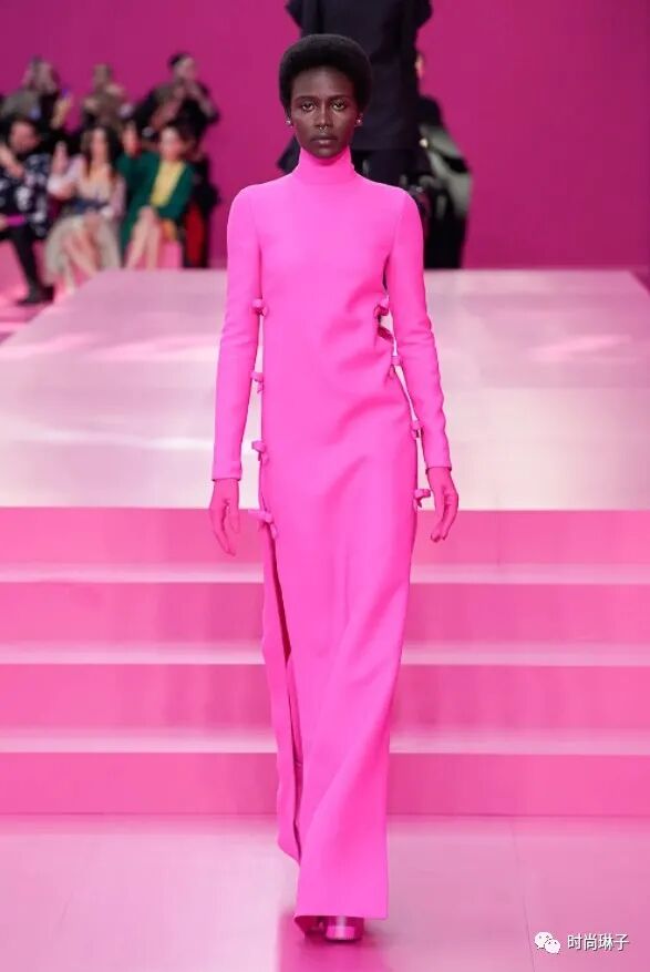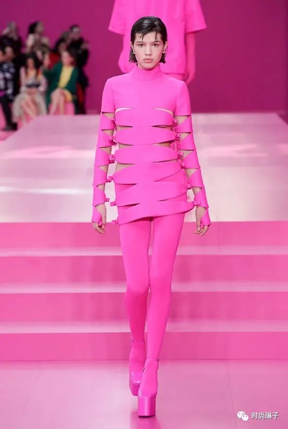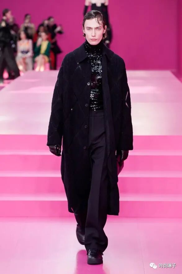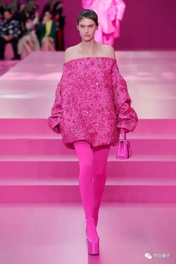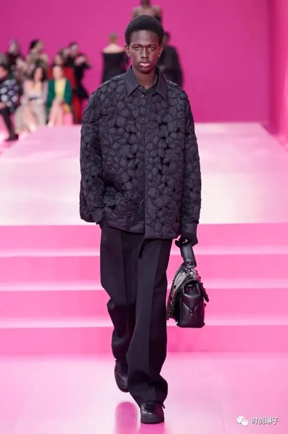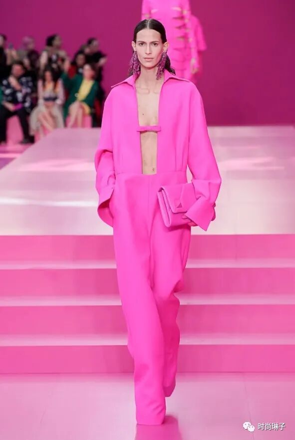 Valentino华伦天奴2022秋冬系列没有五颜六色的调色板,除了中性的黑色,弥漫整个眼球的只有迷人的粉红色。
