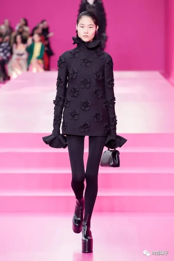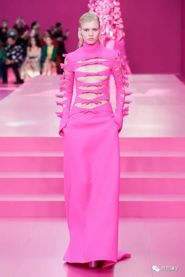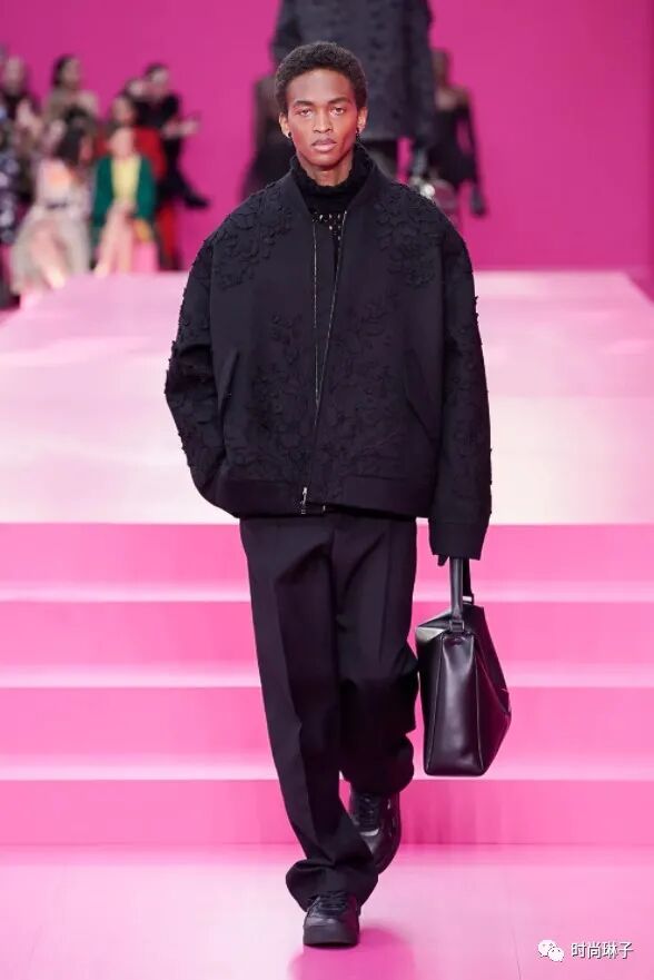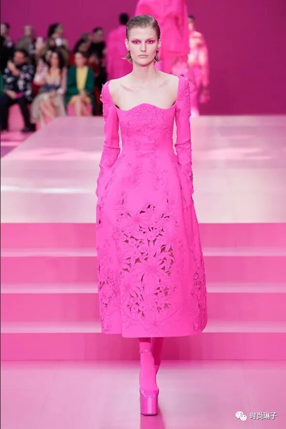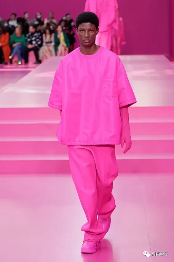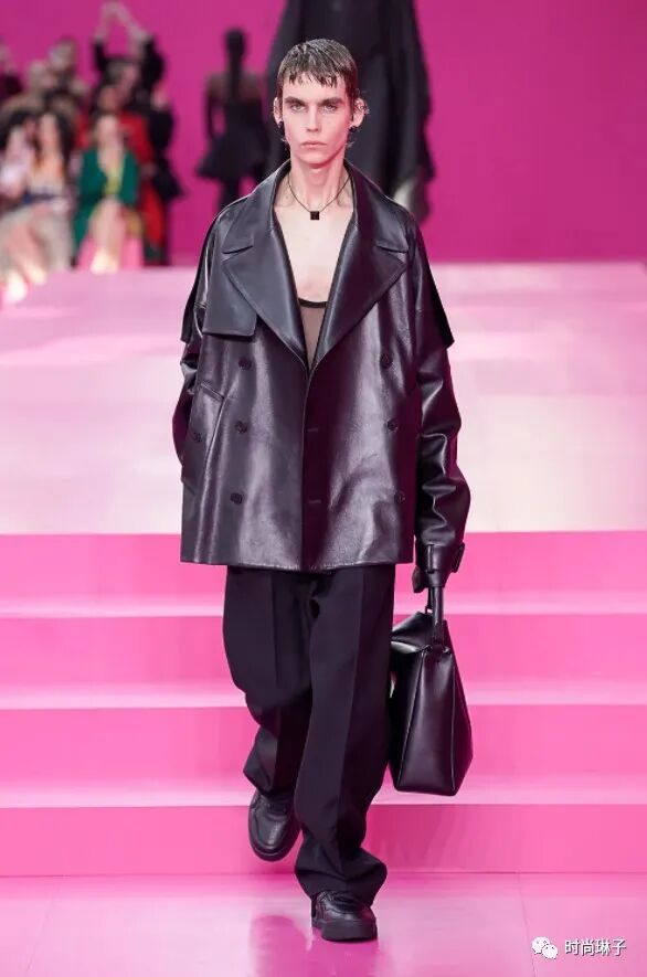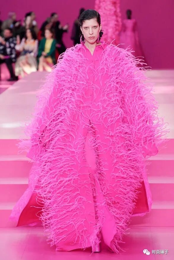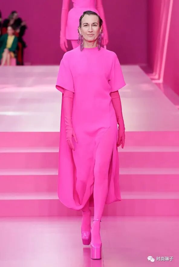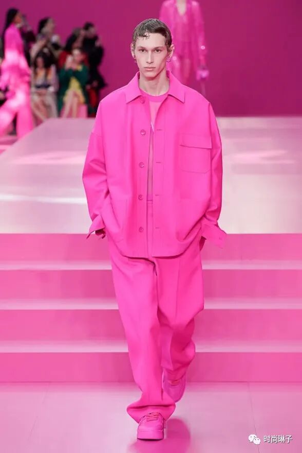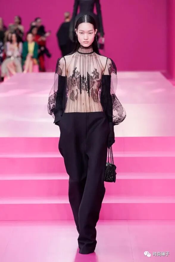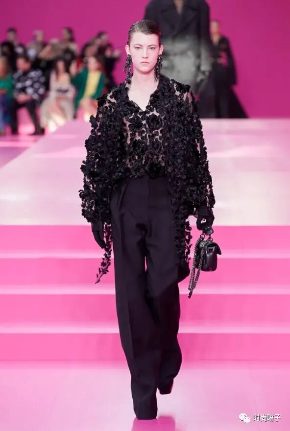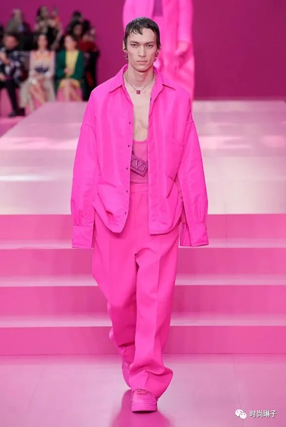 Valentino华伦天奴2022秋冬系列没有五颜六色的调色板,除了中性的黑色,弥漫整个眼球的只有迷人的粉红色。
