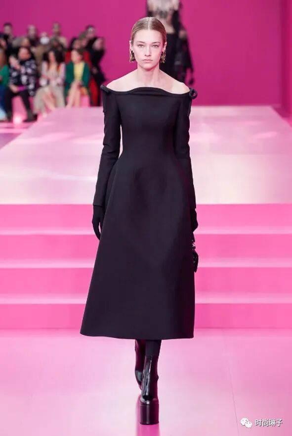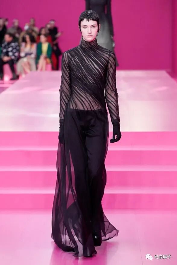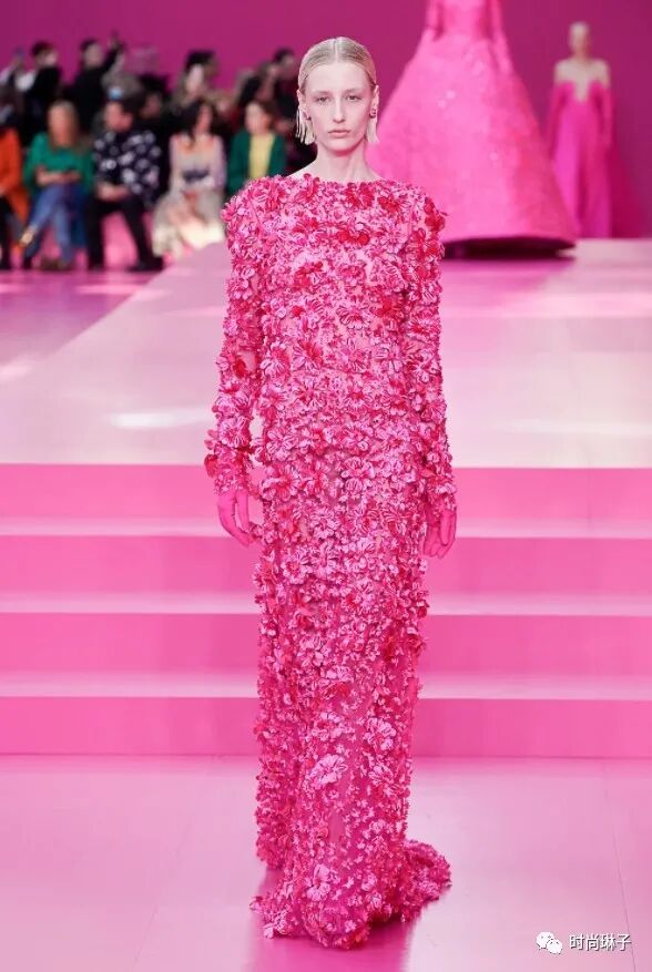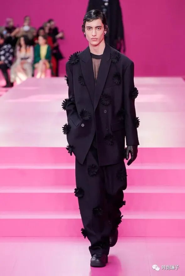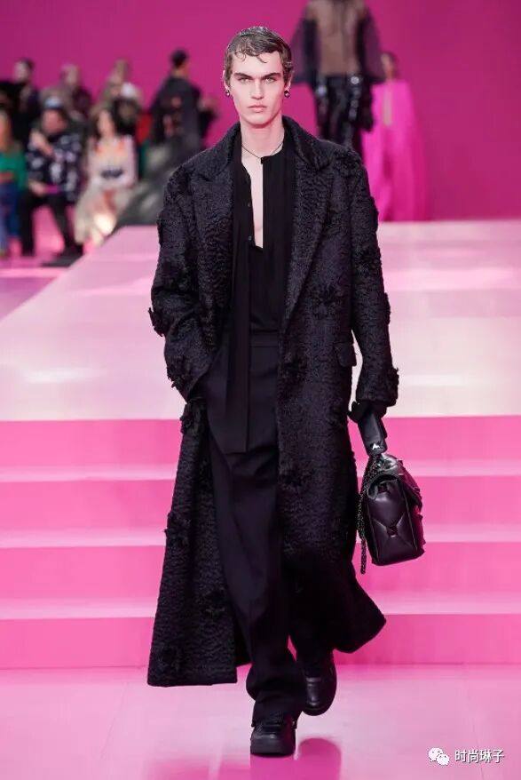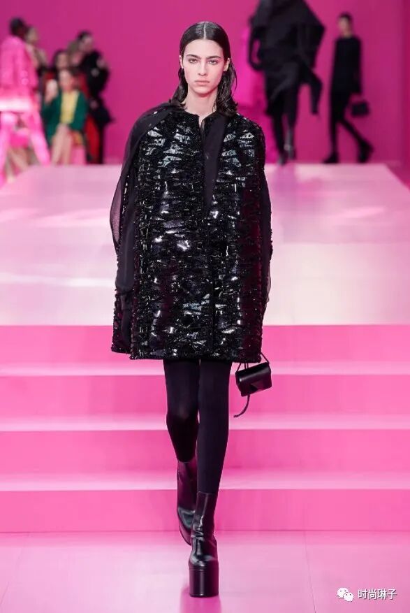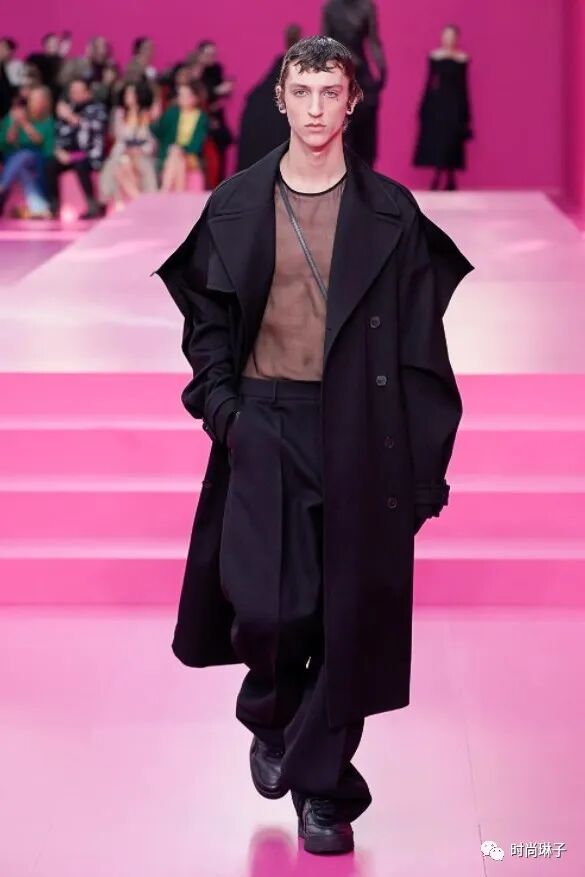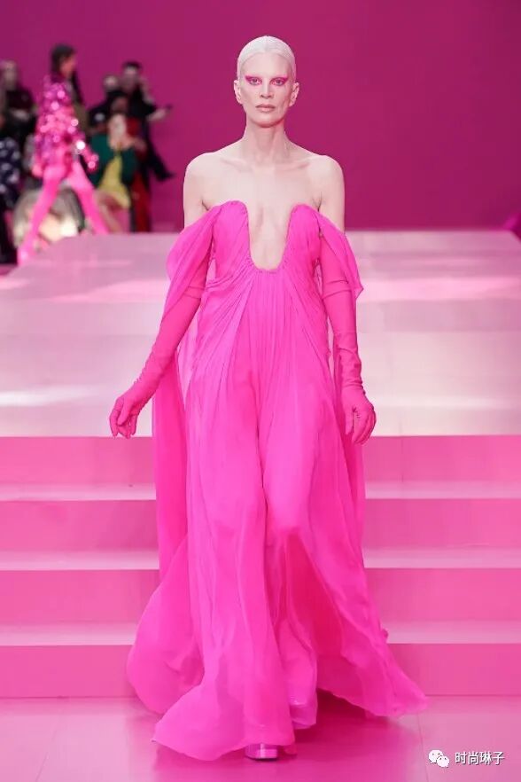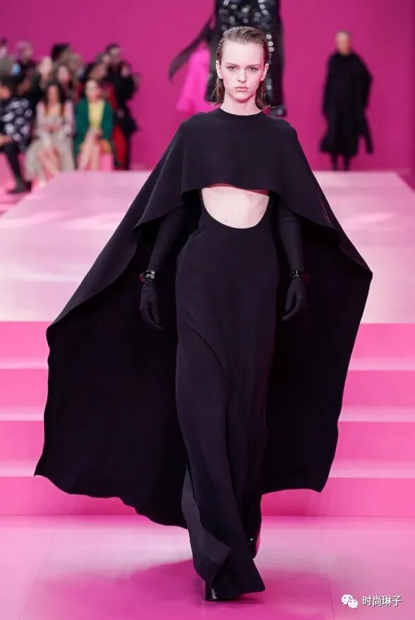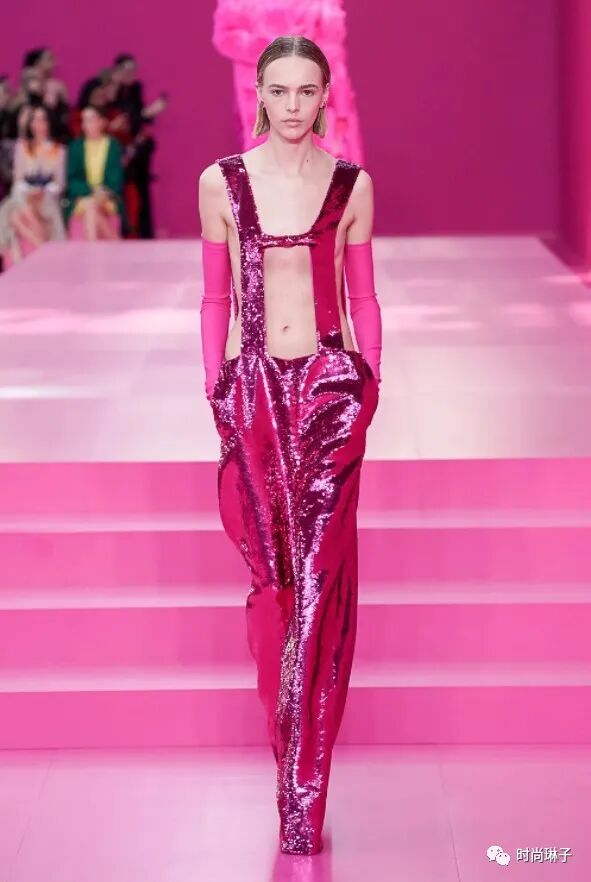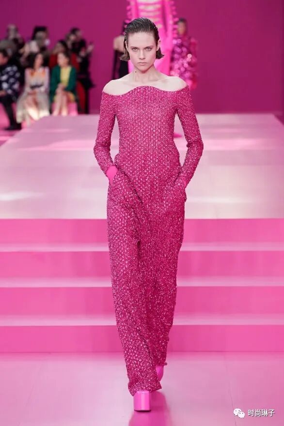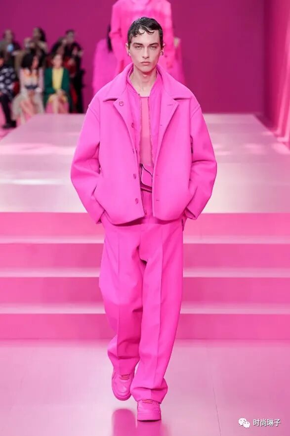 Valentino华伦天奴2022秋冬系列没有五颜六色的调色板,除了中性的黑色,弥漫整个眼球的只有迷人的粉红色。