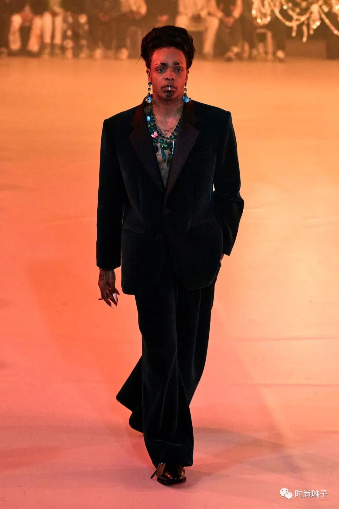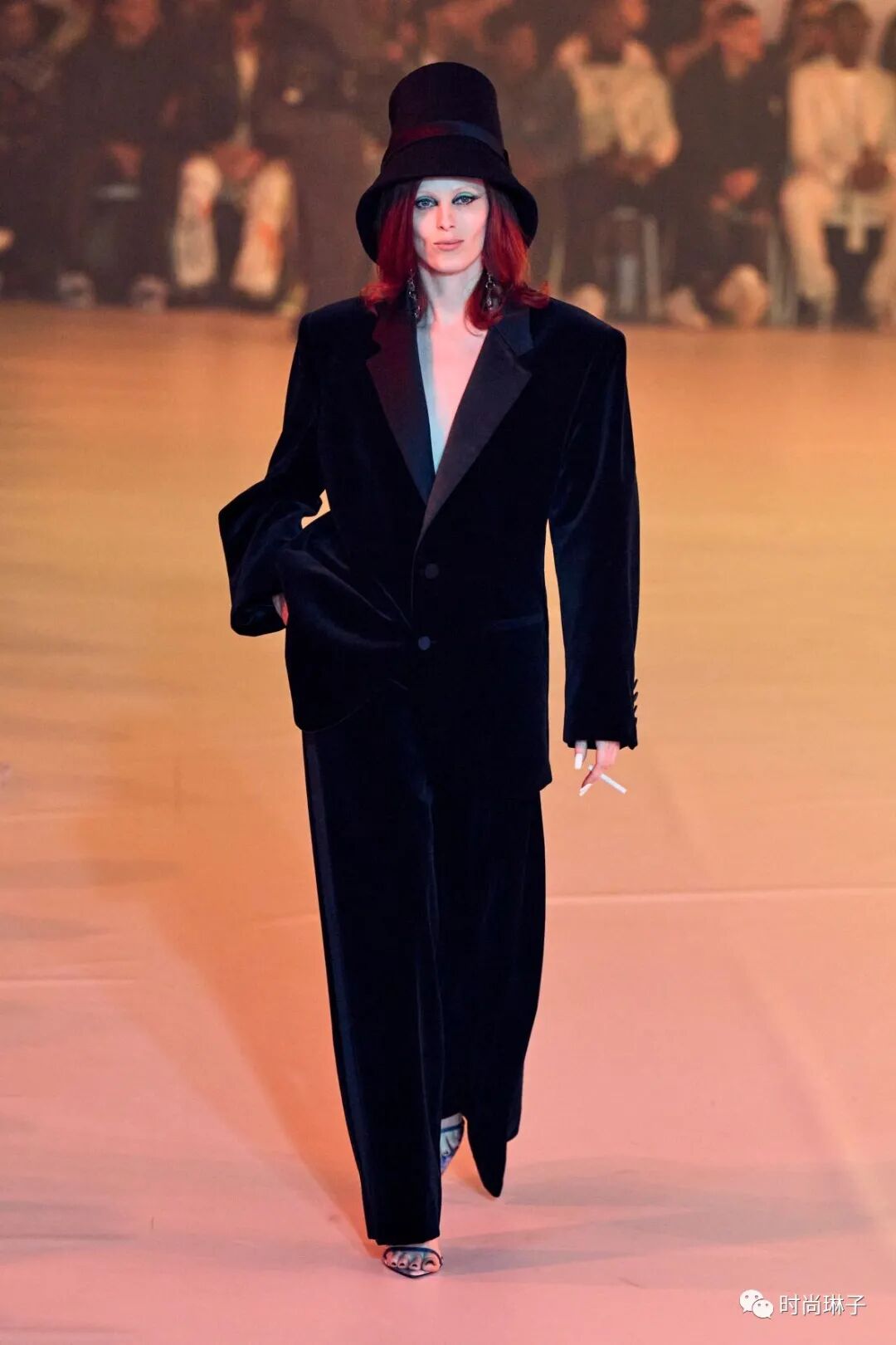 系列中的宽松的西服套装造型,优雅中带着一股酷劲。