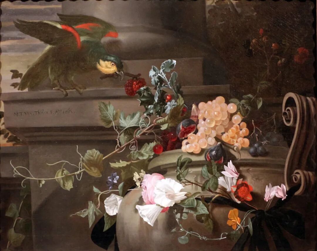 Maria-Theresa-van-Thielen-Natura-morta-con-pappagallo-1661