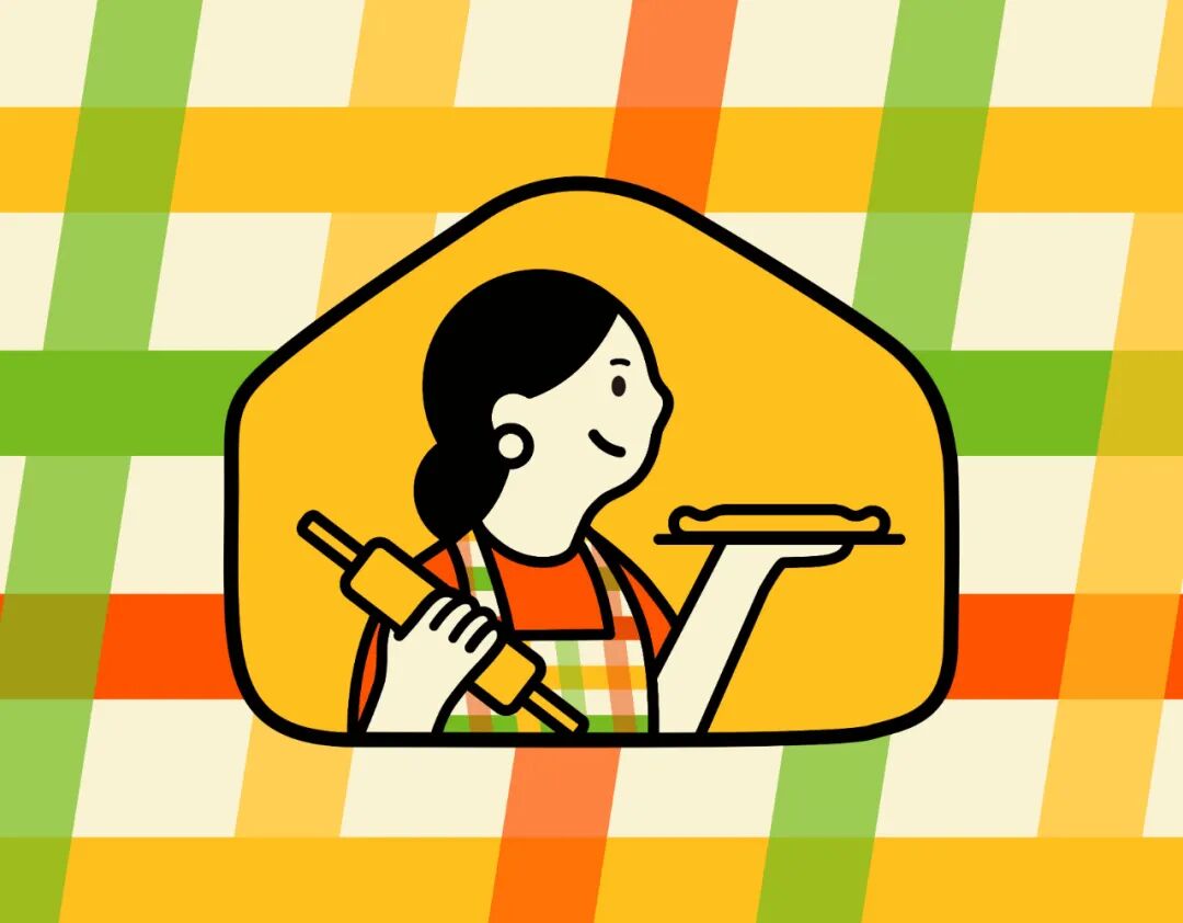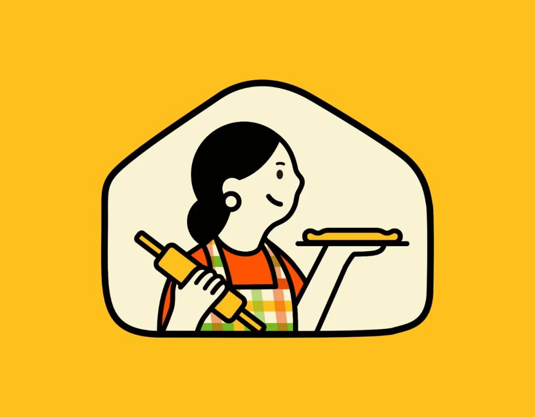 IP与家图形相结合成为品牌符号,更有记忆点,直观地传达出妈妈在家为家人准备食物的温馨场景。
