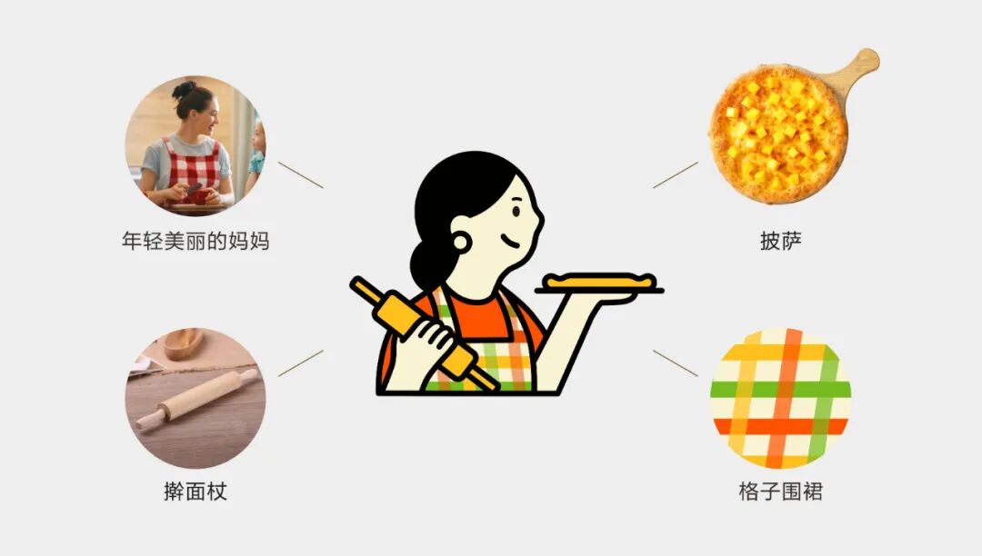 IP角色的创作要借力原型,这样更容易被记忆,因为比起陌生的,人们更愿意记住自己本来就熟悉的,我们搜集了全球妈妈的原型,以简约、年轻感的线稿形式,创作了爱做西餐的卢家妈妈IP。