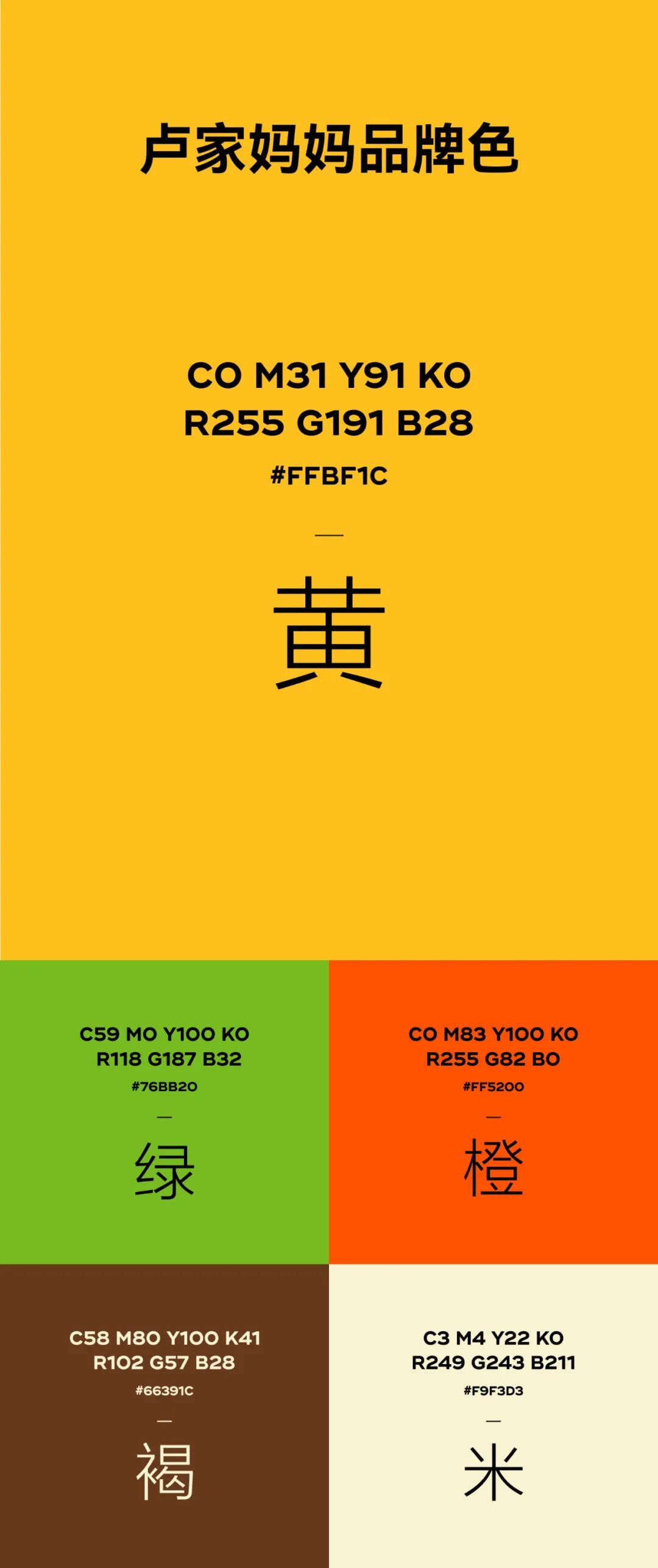 之前的品牌颜色是蓝绿色,偏冷无食欲。我们升级为更明亮、更有食欲的颜色:黄色。