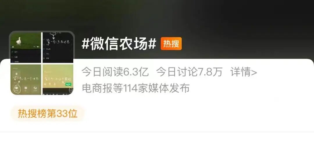 一看,是#微信农场#话题登上了微博热搜,阅读量达到了惊人的6.3亿。