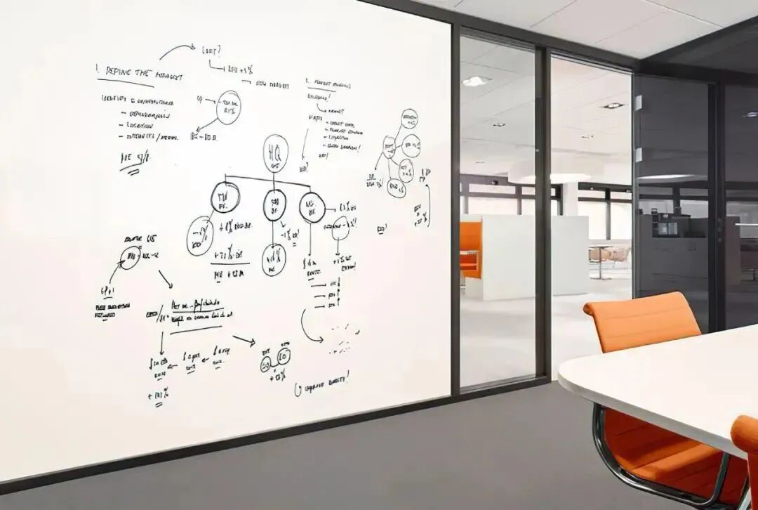 多用于教室、办公室、开放沟通区等墙面,可以将普通墙面变成超大的白板,让水性白板笔随意书写和擦拭