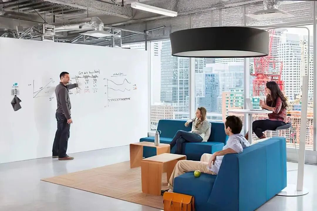 它可以使会议室、培训室、教室、书房、儿童房、创意空间、开放工作区、走廊和儿童游戏区的任意光滑表面变得可以反复书写和擦除,以满足随时随地书写、沟通、创作、教育培训的需求。