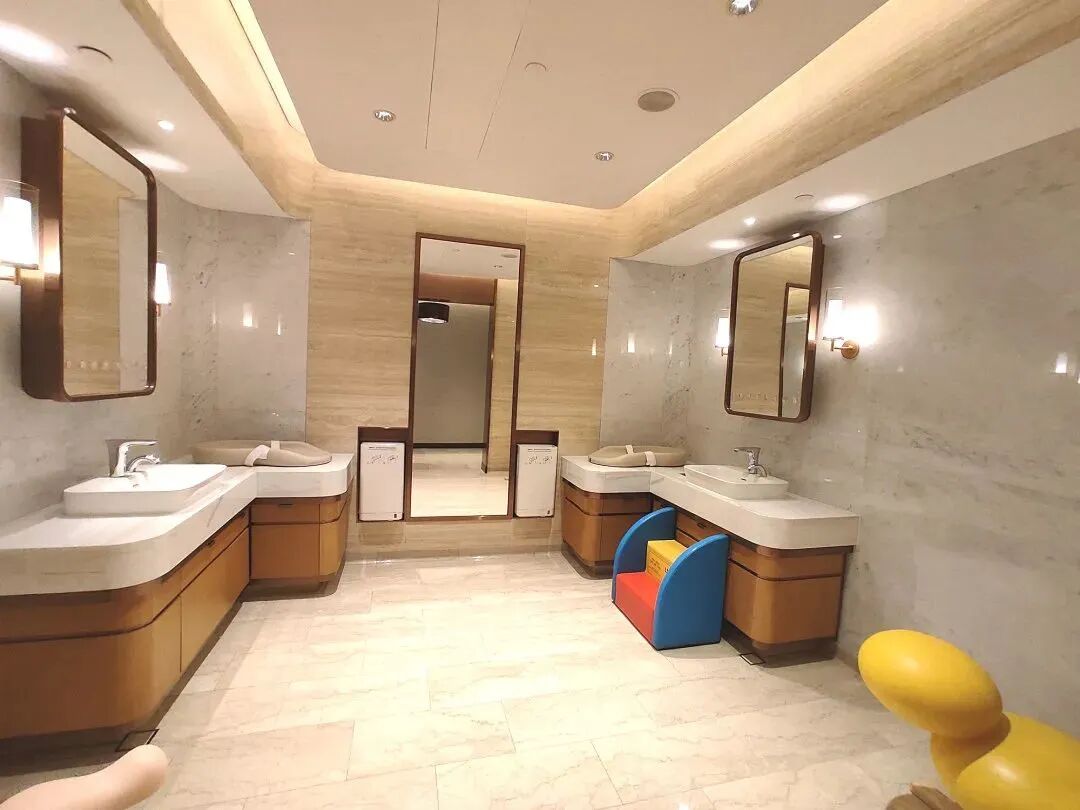 北京王府中环非常贴心地在2F、3F、4F各设置了两个母婴室,室内采用柔和的光线,让消费者进去就能放松下来,空间内设有多功能智能饮水机、飞利浦热奶器、宝妈哺乳椅、空气净化器、婴儿温湿纸巾、换尿布台,还为小朋友打造了阶梯洗手台,自动感应温水及自动感应门又显示出现代科技感。此外,北京王府中环还单独设有家庭室/家庭卫生间,里面设置了无障碍设施和儿童马桶,可供行动不便的人士,以及带小孩的家长帮助孩子使用。